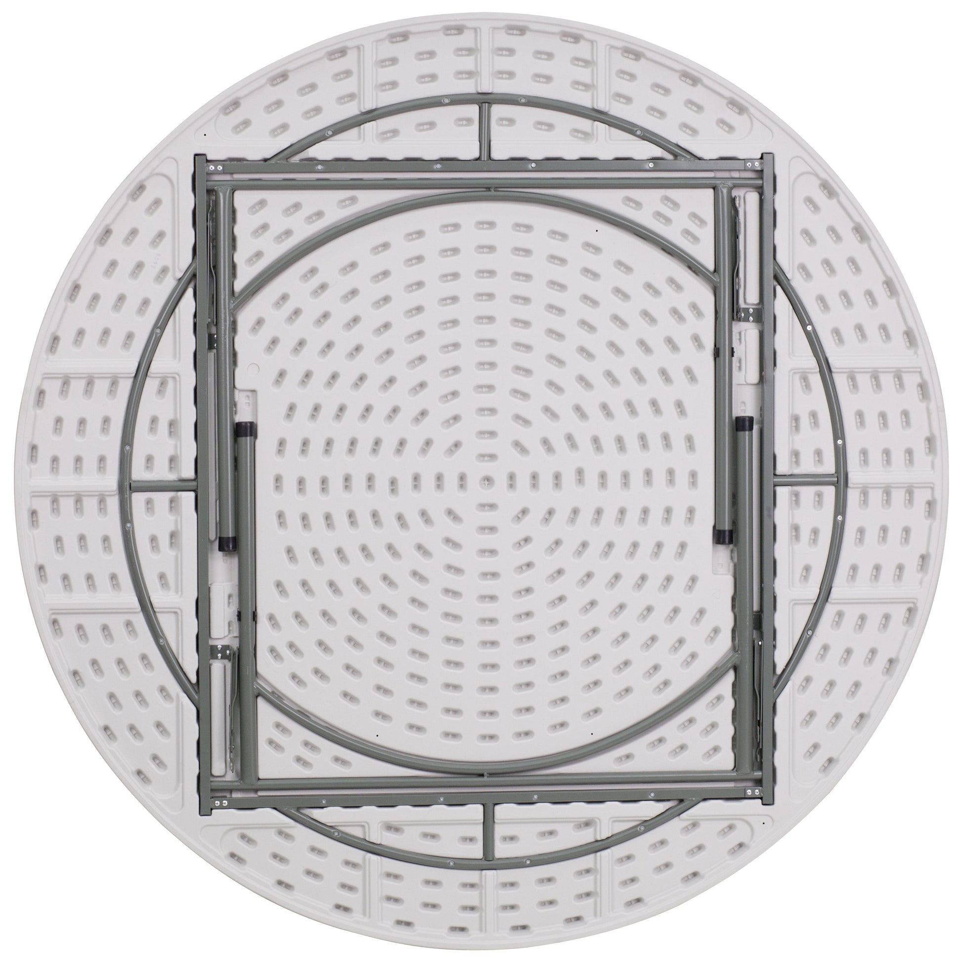 Kathryn 6-Foot Round Granite White Plastic Folding Table Dimensions: 72"W x 72"D x 29"H