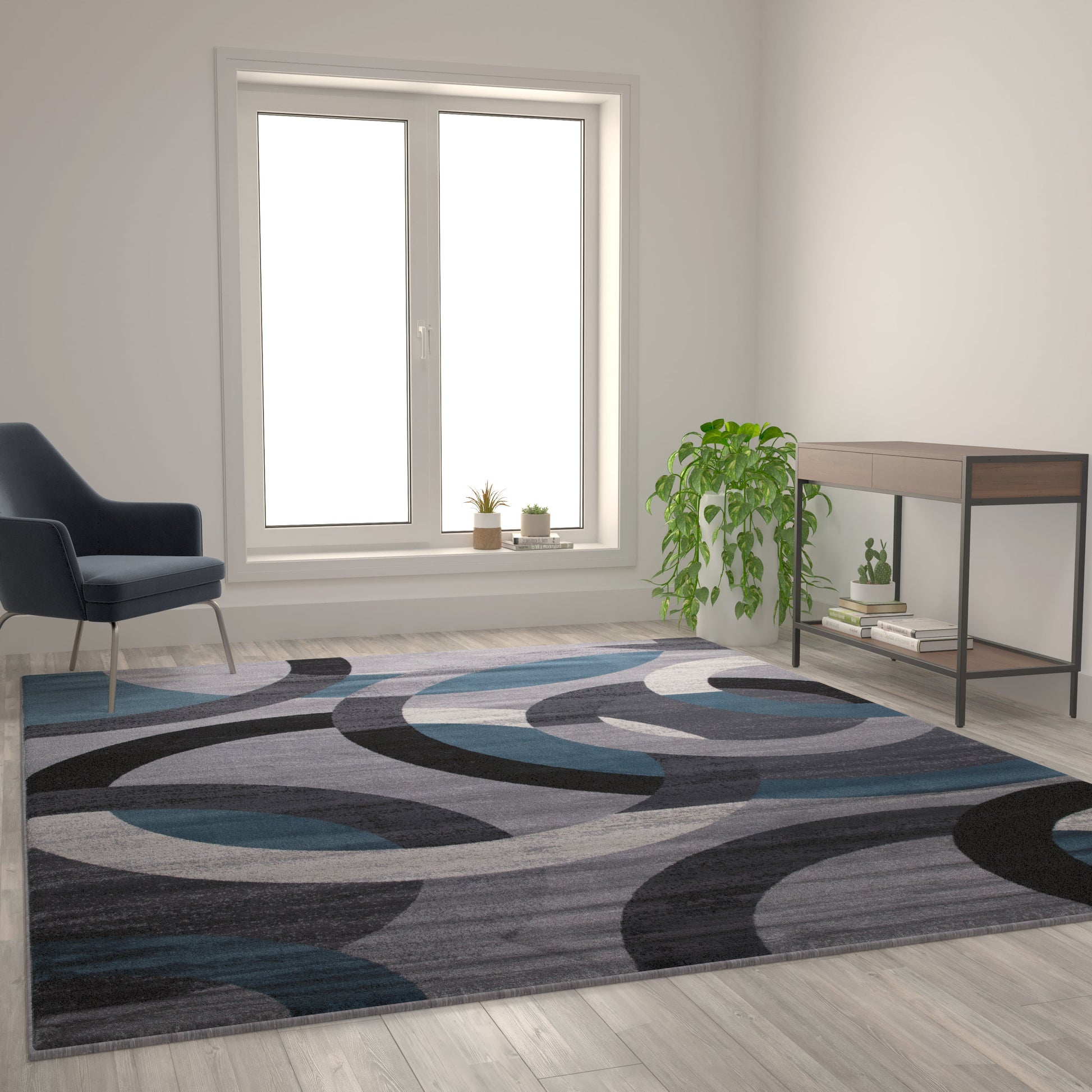 Harken Collection Geometric 8' x 10' Blue and Gray Olefin Area Rug with Jute Backing, Living Room, Bedroom Dimensions: 96"W x 120"D x 0.5"H