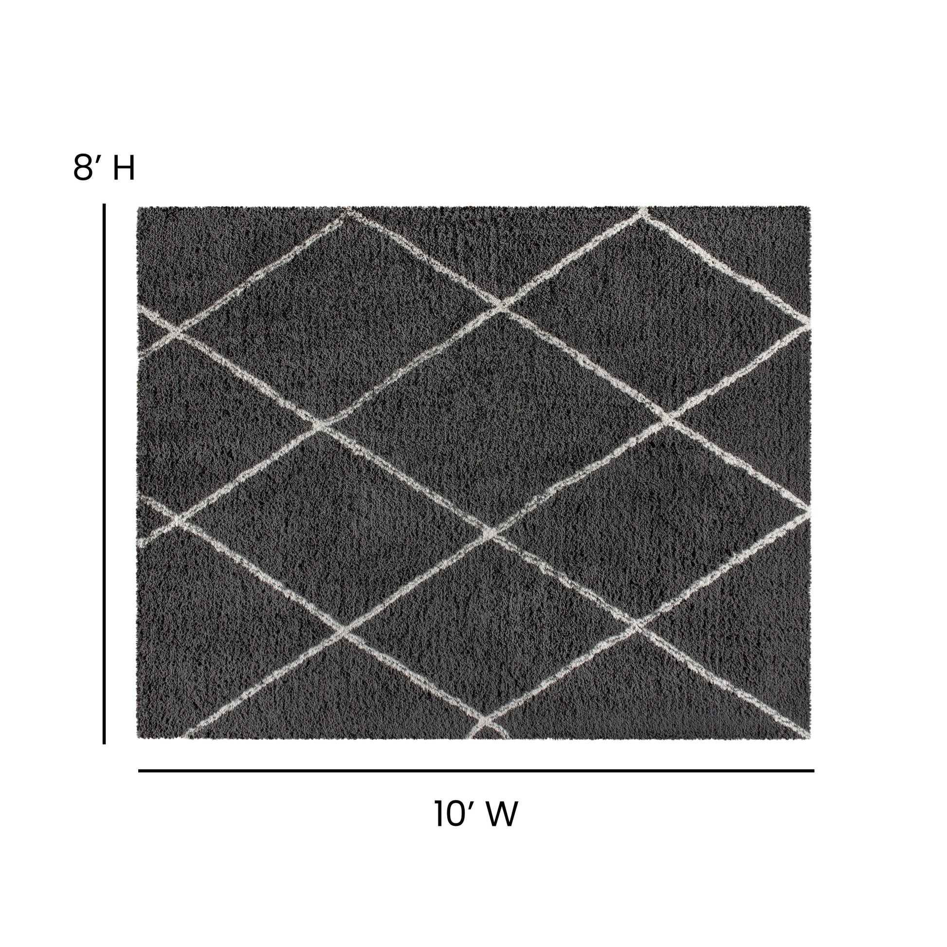 Roxy Shag Style Diamond Trellis Area Rug - 8' x 10' - Charcoal/Ivory Polyester (PET) Dimensions: 94"W x 120"D x 0.5"H