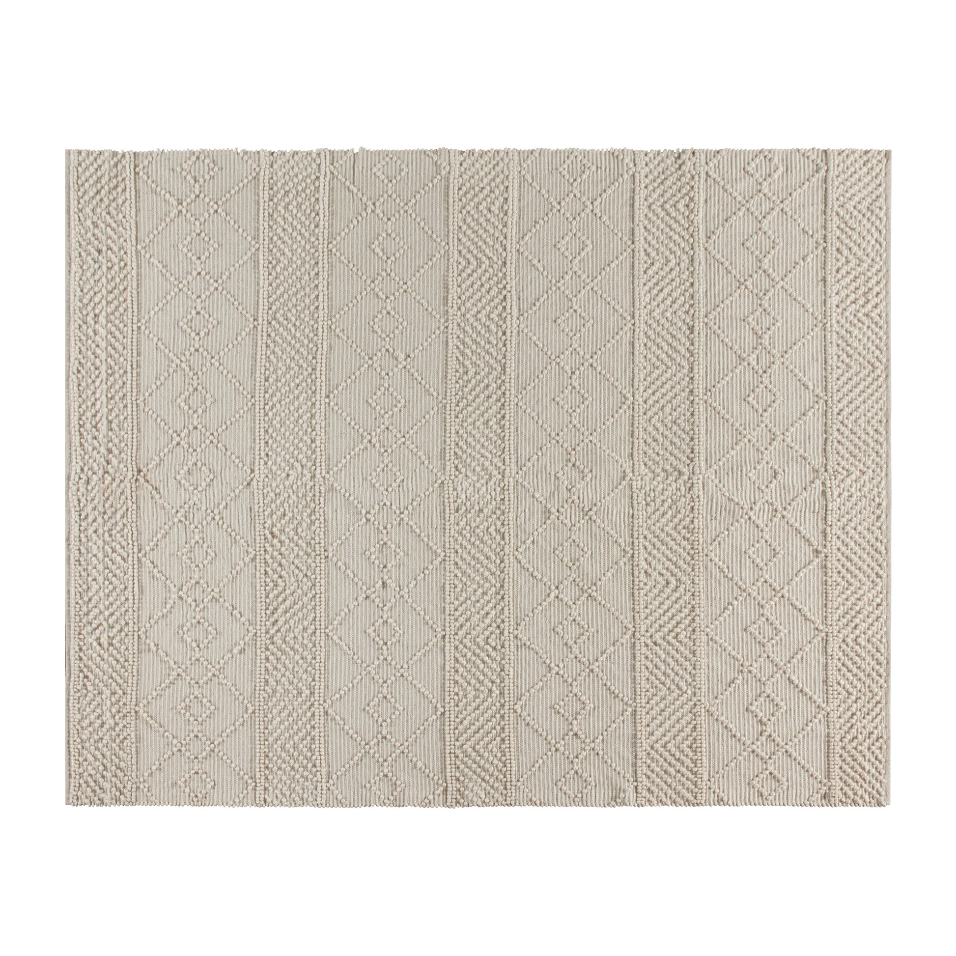 Melissa 8' x 10' Ivory Geometric Design Handwoven Area Rug - Wool/Polyester/Cotton Blend Dimensions: 93"W x 118"D x 0.75"H