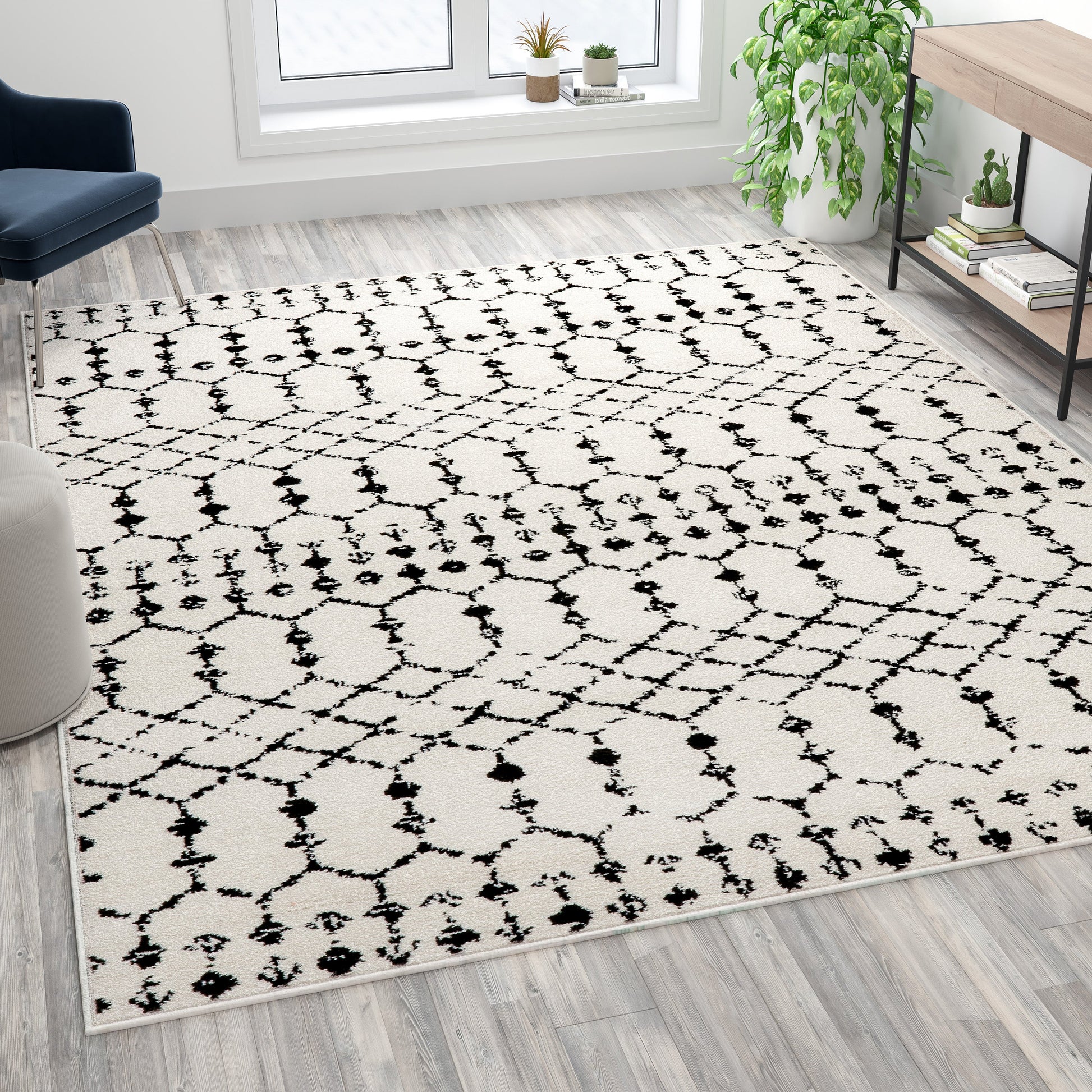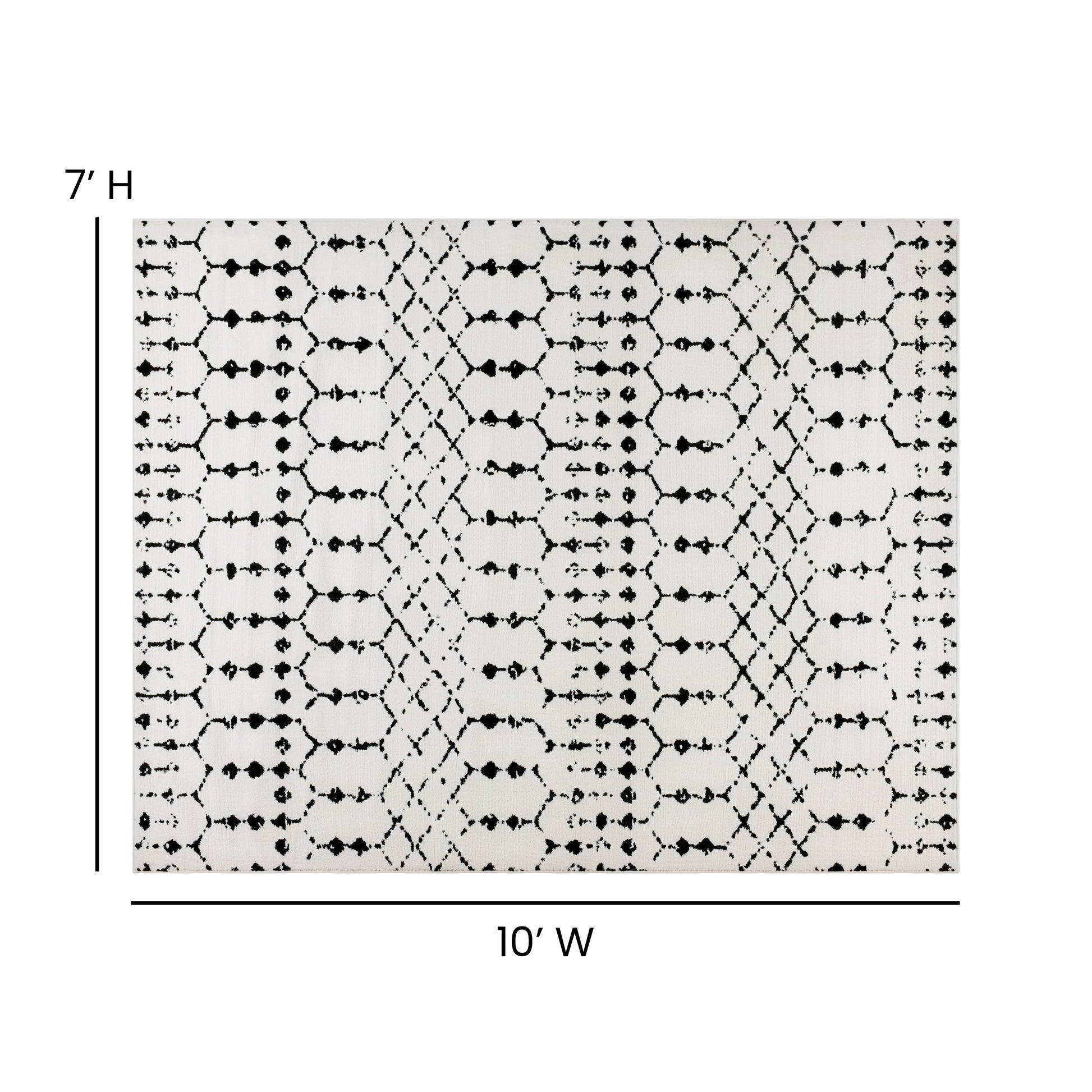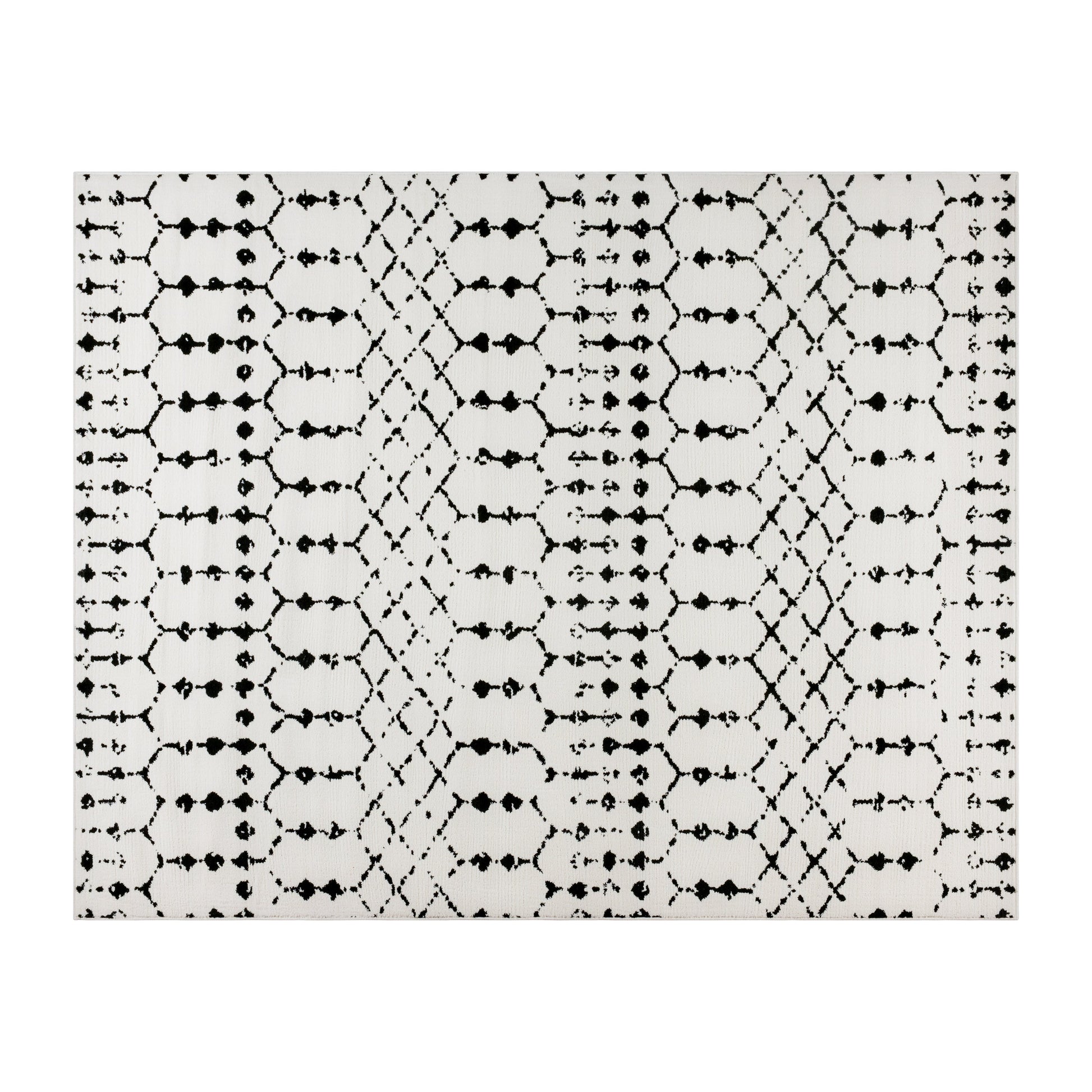 Beth Geometric Bohemian Low Pile Rug - 8' x 10' - Ivory/Black Dimensions: 96"W x 119"D x 0.5"H