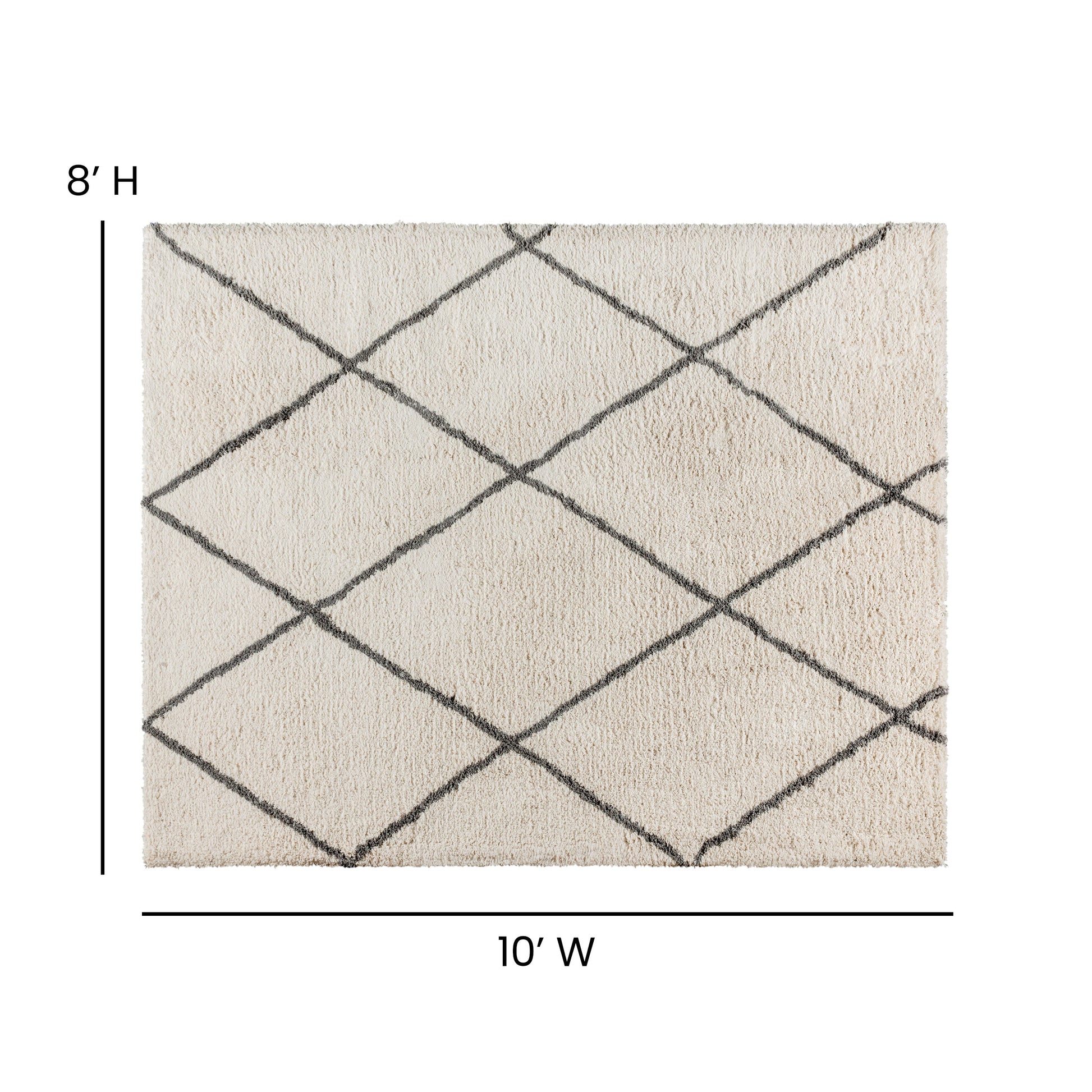 Roxy Shag Style Diamond Trellis Area Rug - 8' x 10' - Ivory/Gray Polyester (PET) Dimensions: 94"W x 120"D x 0.5"H