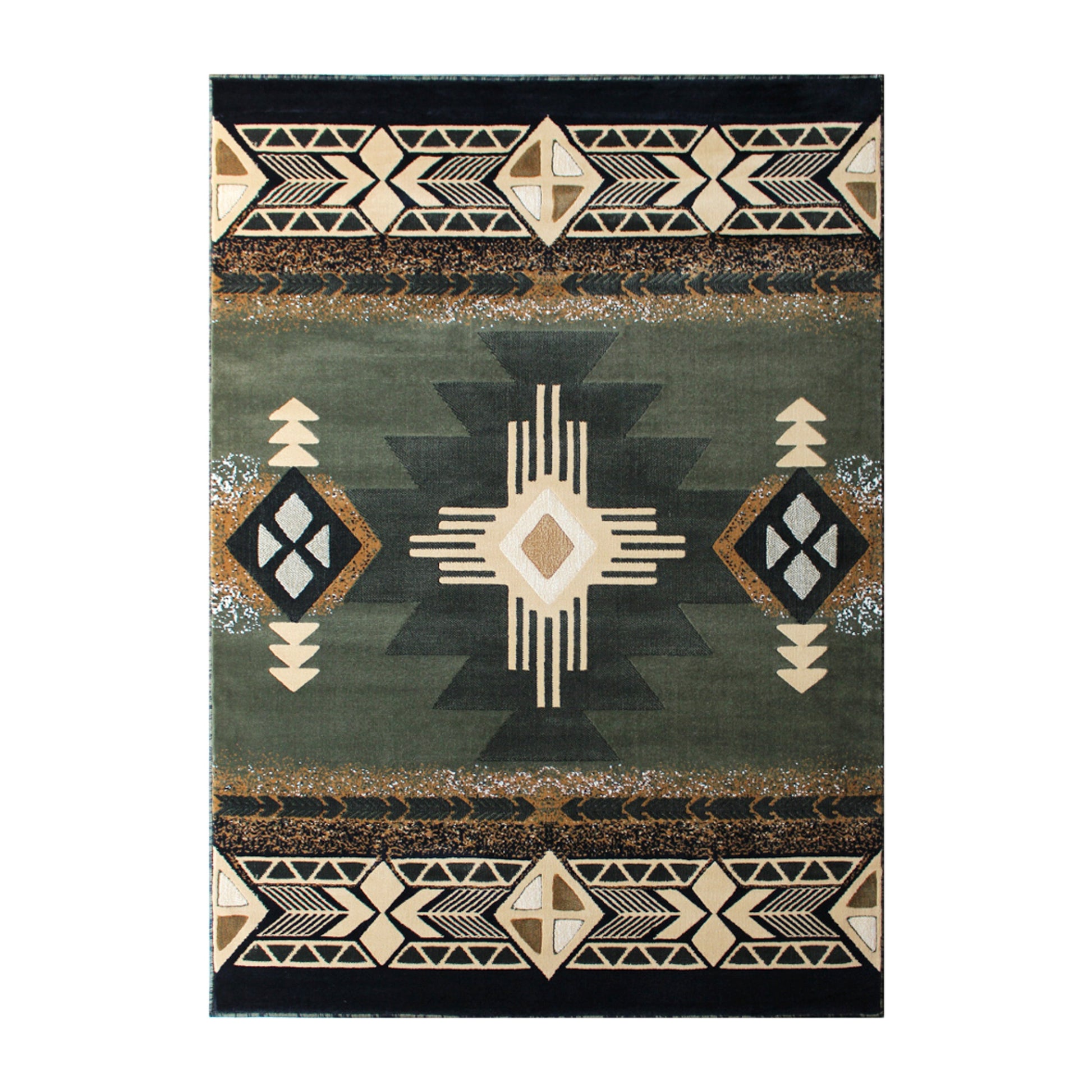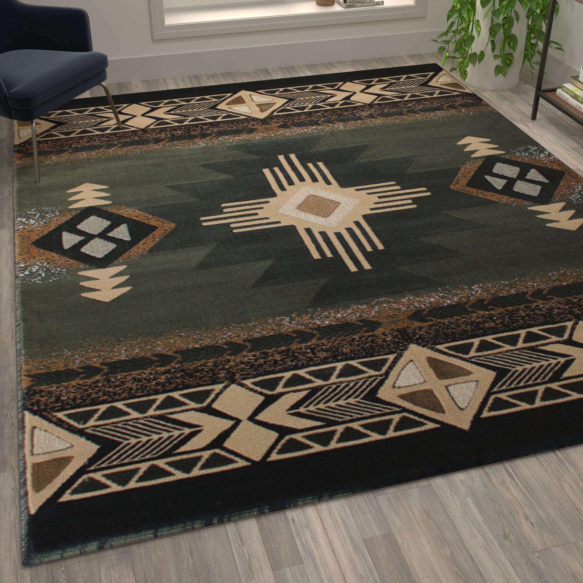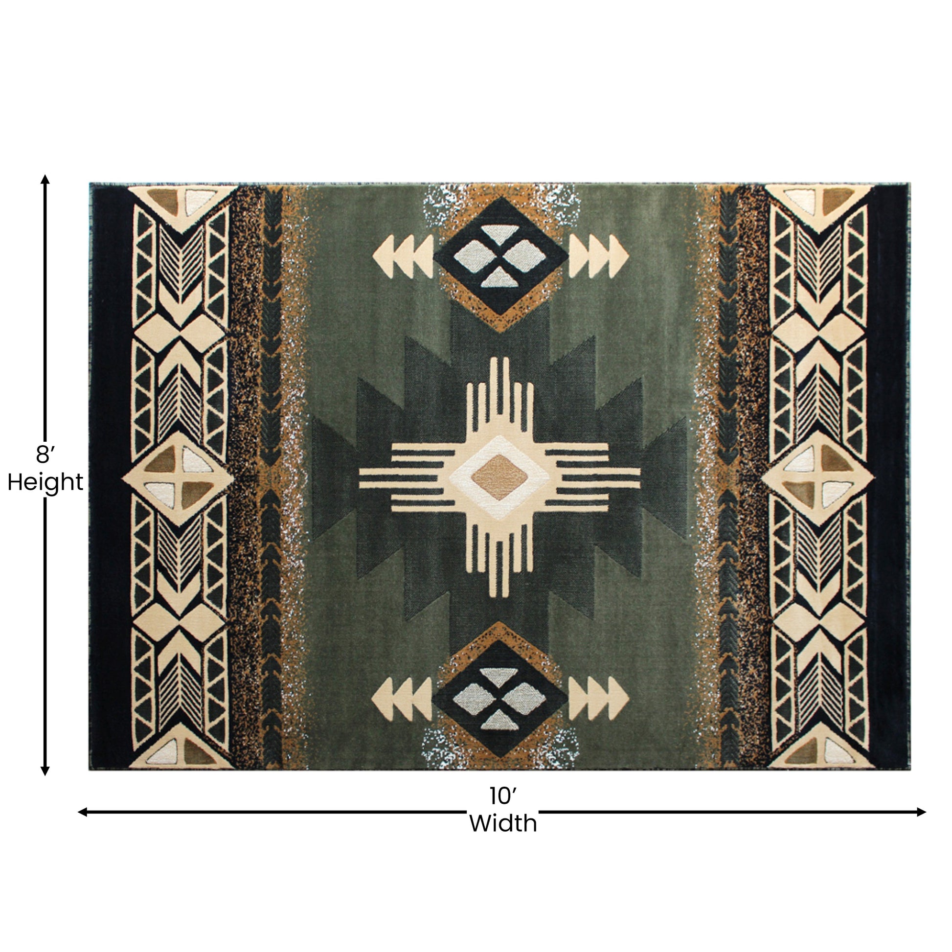 Mohave Collection 8' x 10' Sage Traditional Southwestern Style Area Rug - Olefin Fibers with Jute Backing Dimensions: 96"W x 120"D x 0.5"H