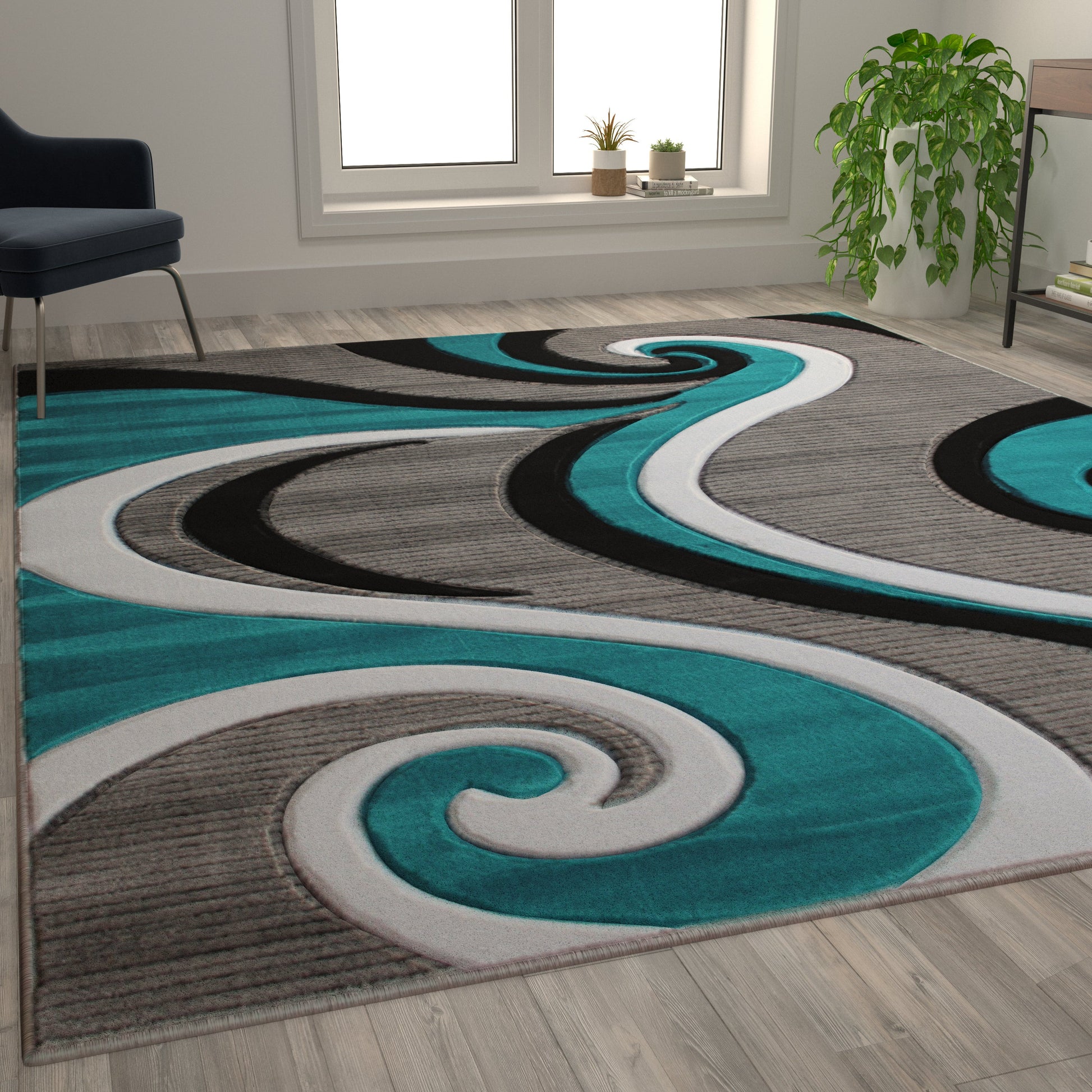 8x10 Turquoise Abstract Rug KP-RG952-810-TQ-GG