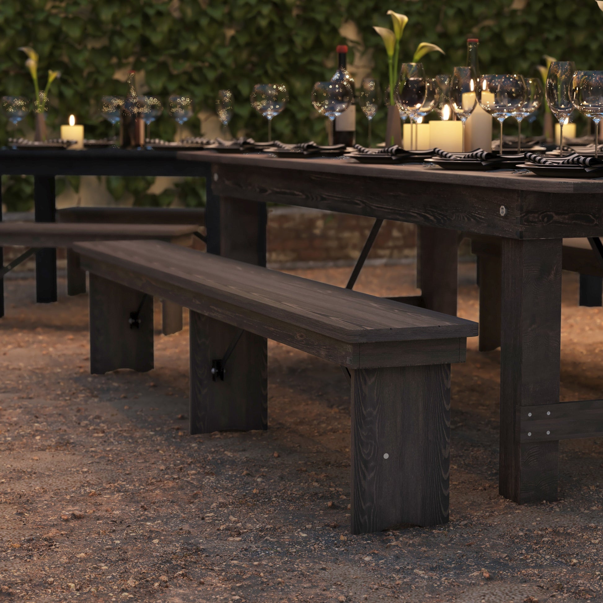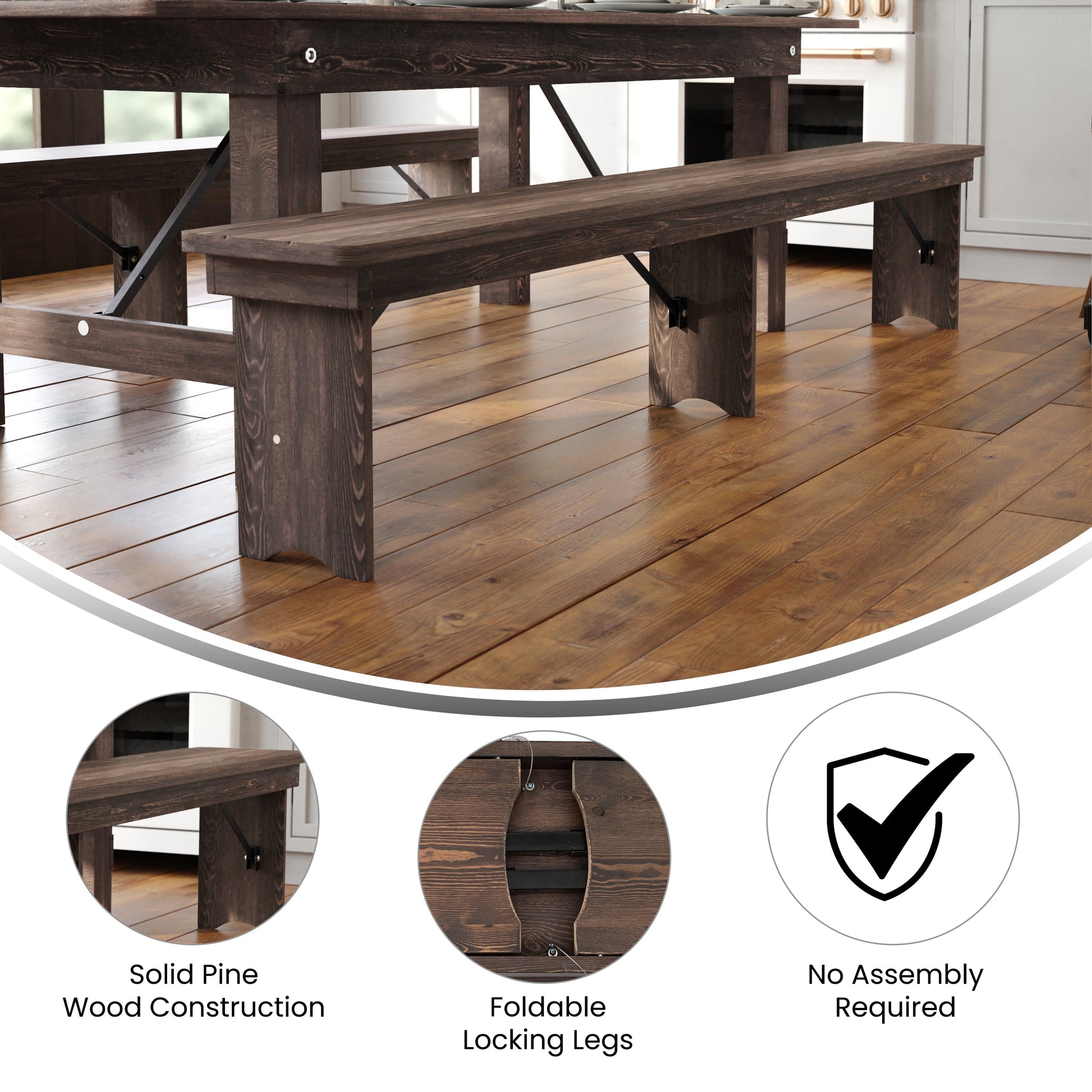HERCULES 8' x 12" Antique Rustic Mahogany Solid Pine Folding Farm Bench with 3 Legs Dimensions: 12"W x 96"D x 17.75"H