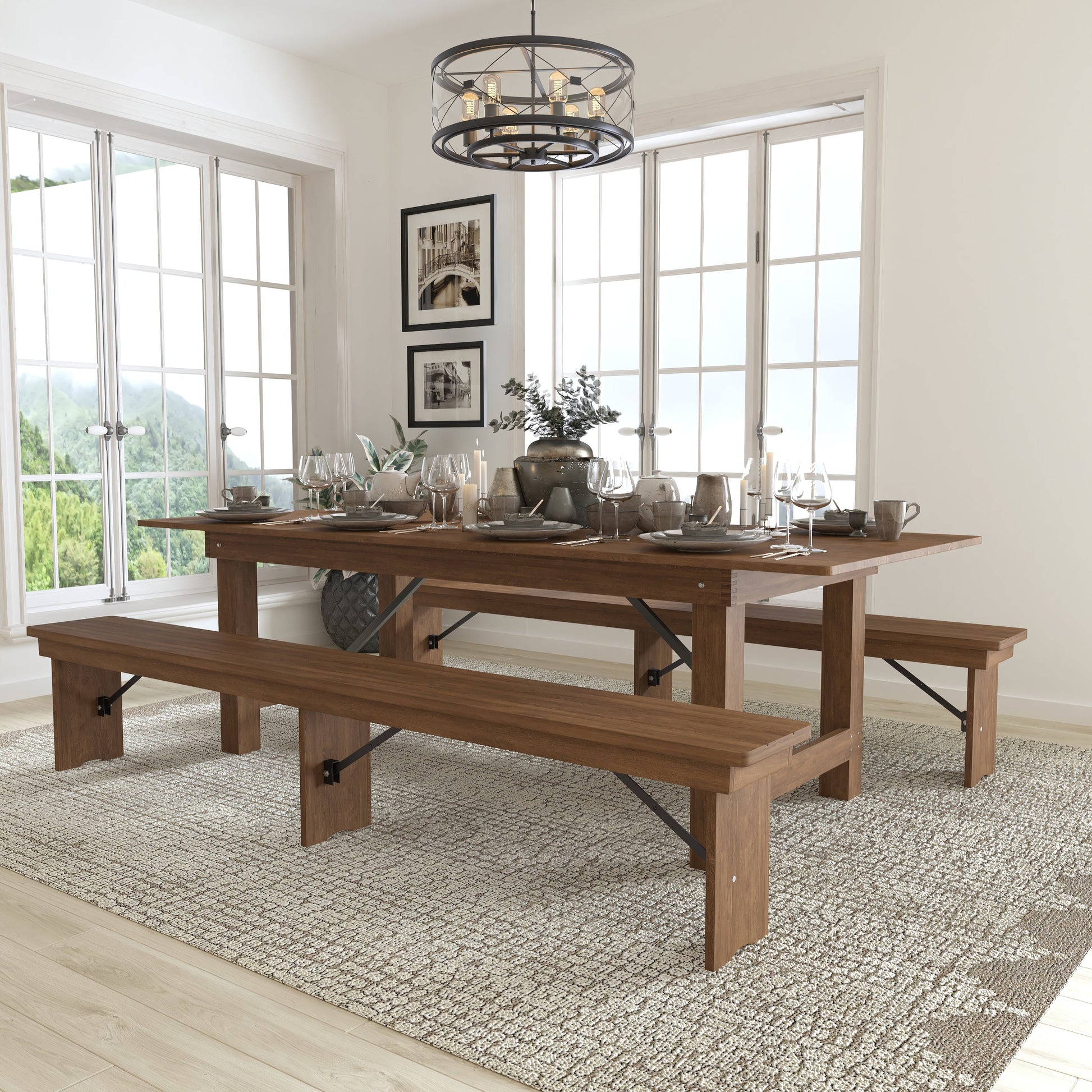 8'x40" Farm Table/2 Bench Set XA-FARM-4-GG