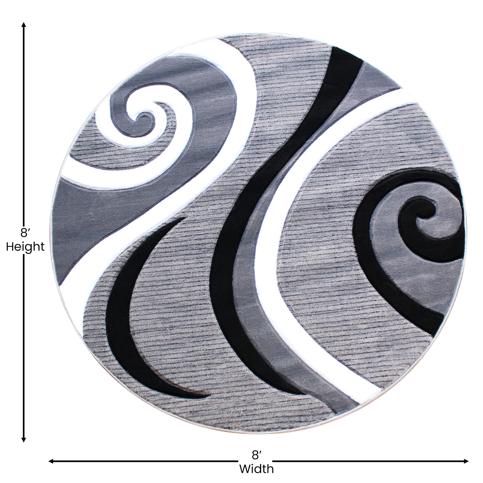 8x8 Gray Abstract Rug KP-RG952-88-GY-GG