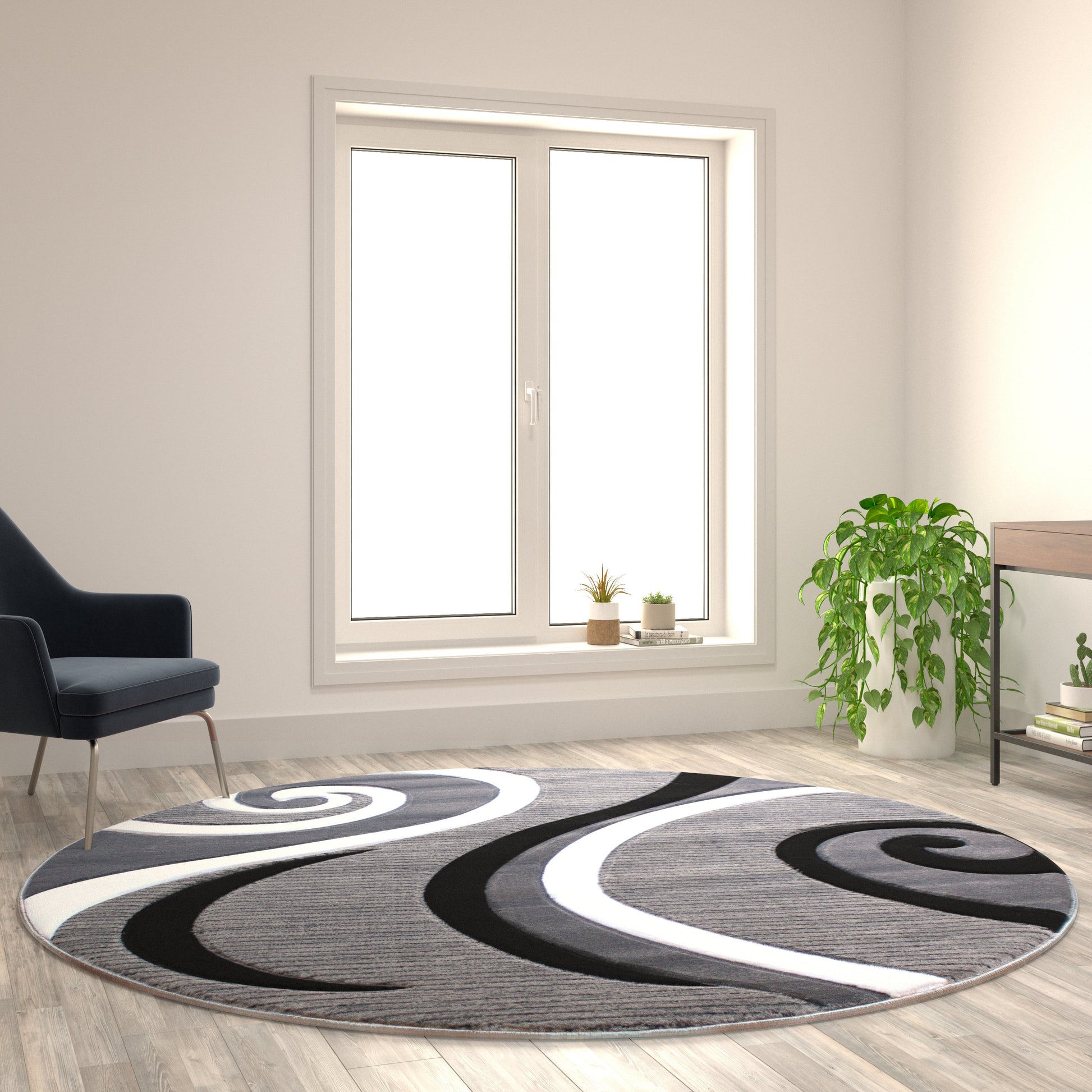 Athos Collection 8' x 8' Gray Abstract Area Rug - Olefin Rug with Jute Backing - Hallway, Entryway, or Bedroom Dimensions: 96"W x 96"D x 0.5"H