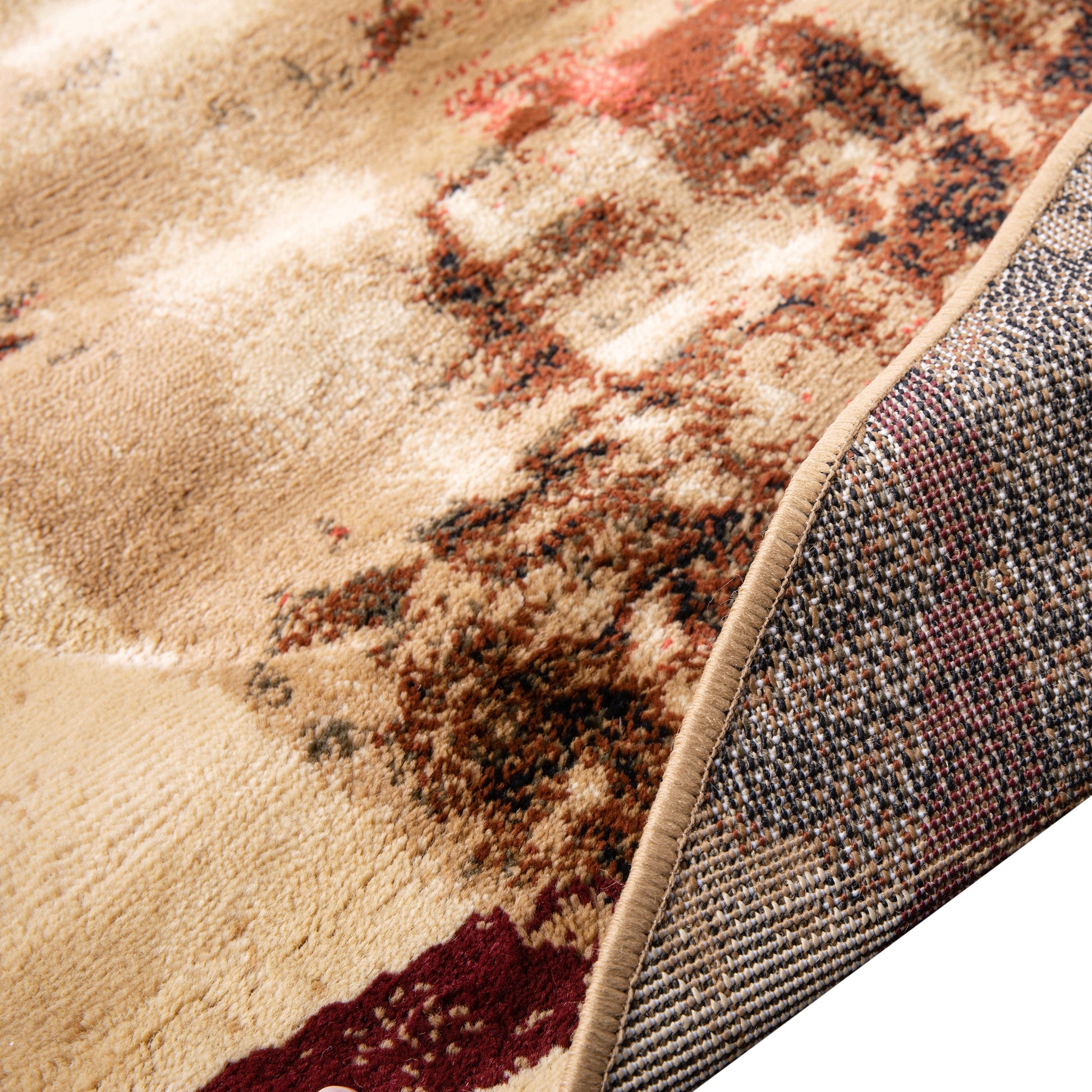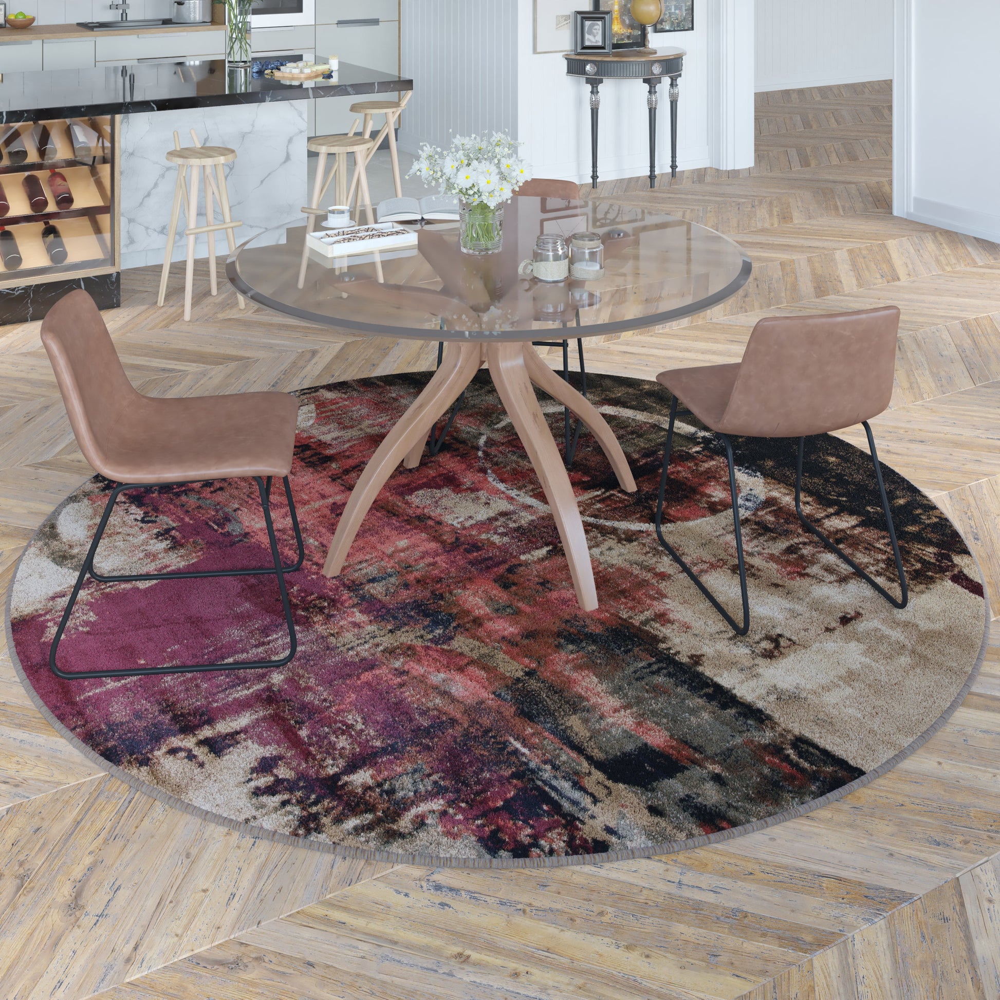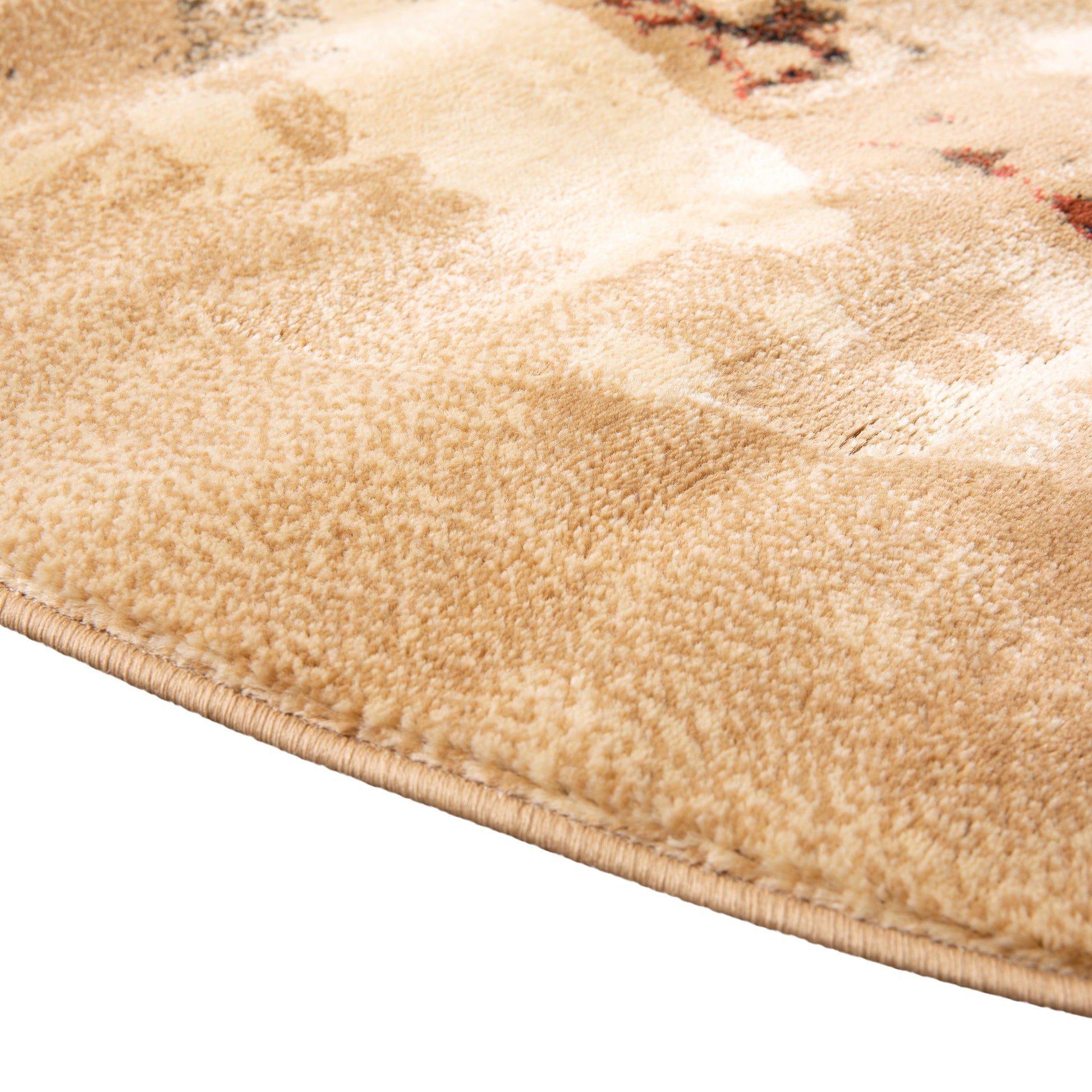 Caldor Collection Abstract 8' x 8' Round Warm Beige, Green, and Red Olefin Area Rug with Jute Backing, Living Room, Bedroom Dimensions: 93.6"W x 93.6"D x 0.5"H