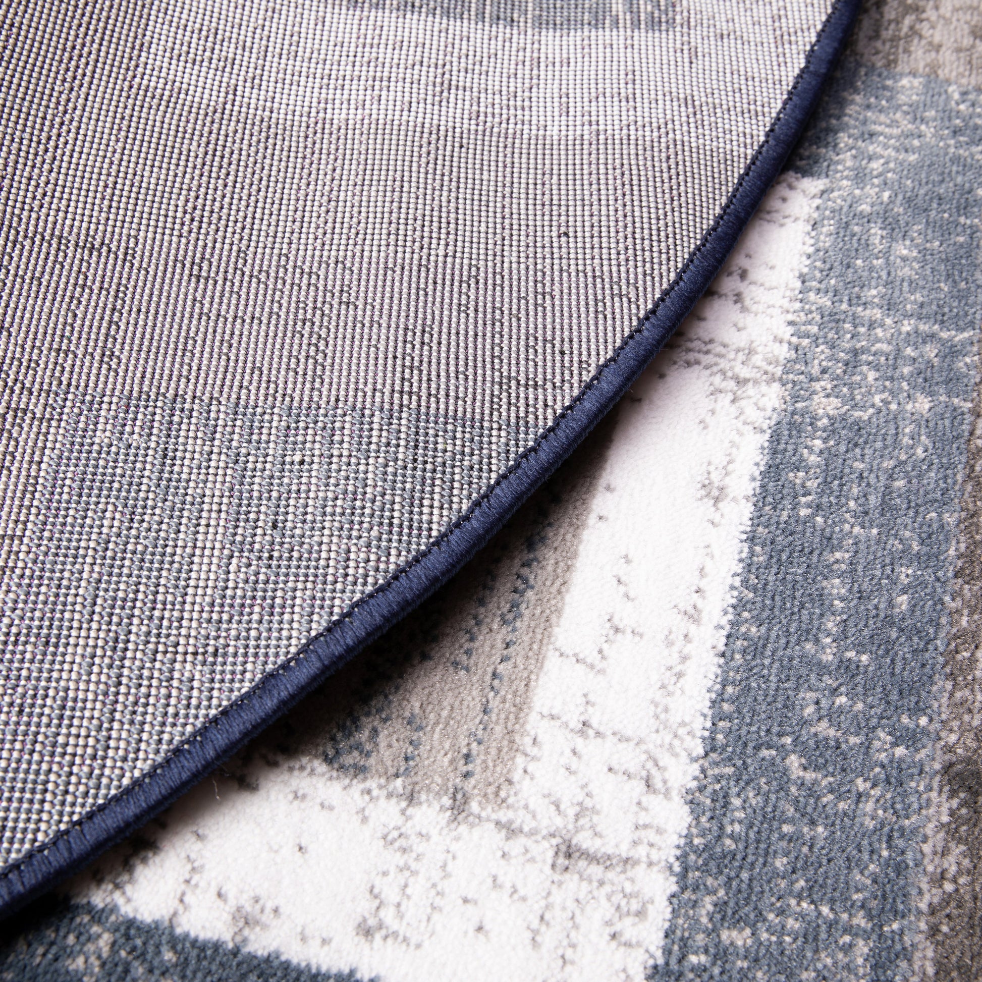 Gideon Collection Geometric 8' x 8' Blue, Grey, and White Round Olefin Area Rug with Cotton Backing, Living Room, Bedroom Dimensions: 96"W x 96"D x 0.5"H
