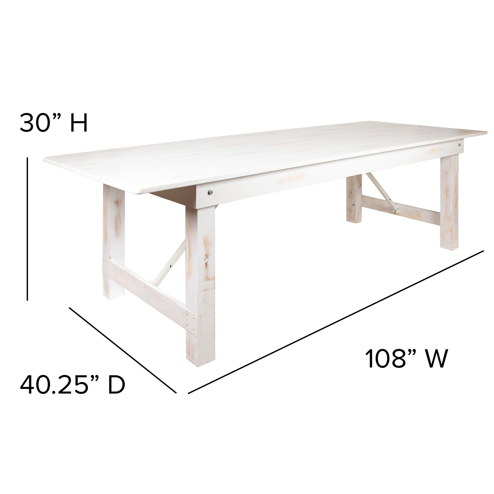 HERCULES Series 9' x 40" Antique Rustic White Folding Farm Table and Four Bench Set Dimensions: 40.25"W x 108"D x 30"H