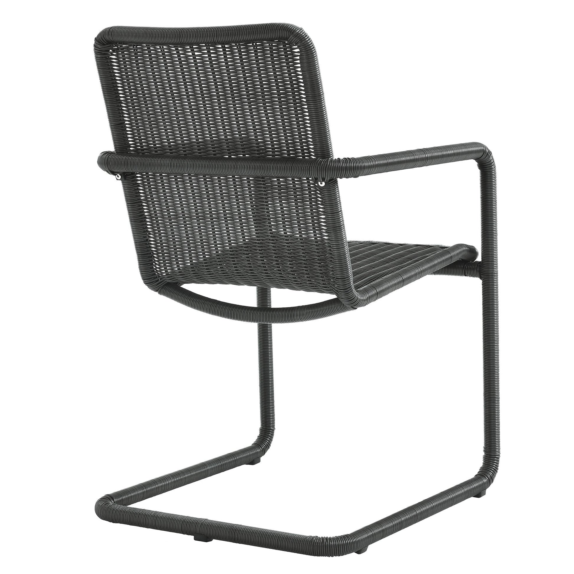 Enhance your outdoor space with this exquisite set of 2 wicker dining chairs, designed to blend style and durability seamlessly. Each chair features a robust cantilever steel frame, where the armrests, seat, and legs flow together in a sleek, continuous design. Wrapped in synthetic wicker, these chairs exude a natural, earthy aesthetic that complements any patio or garden setting.