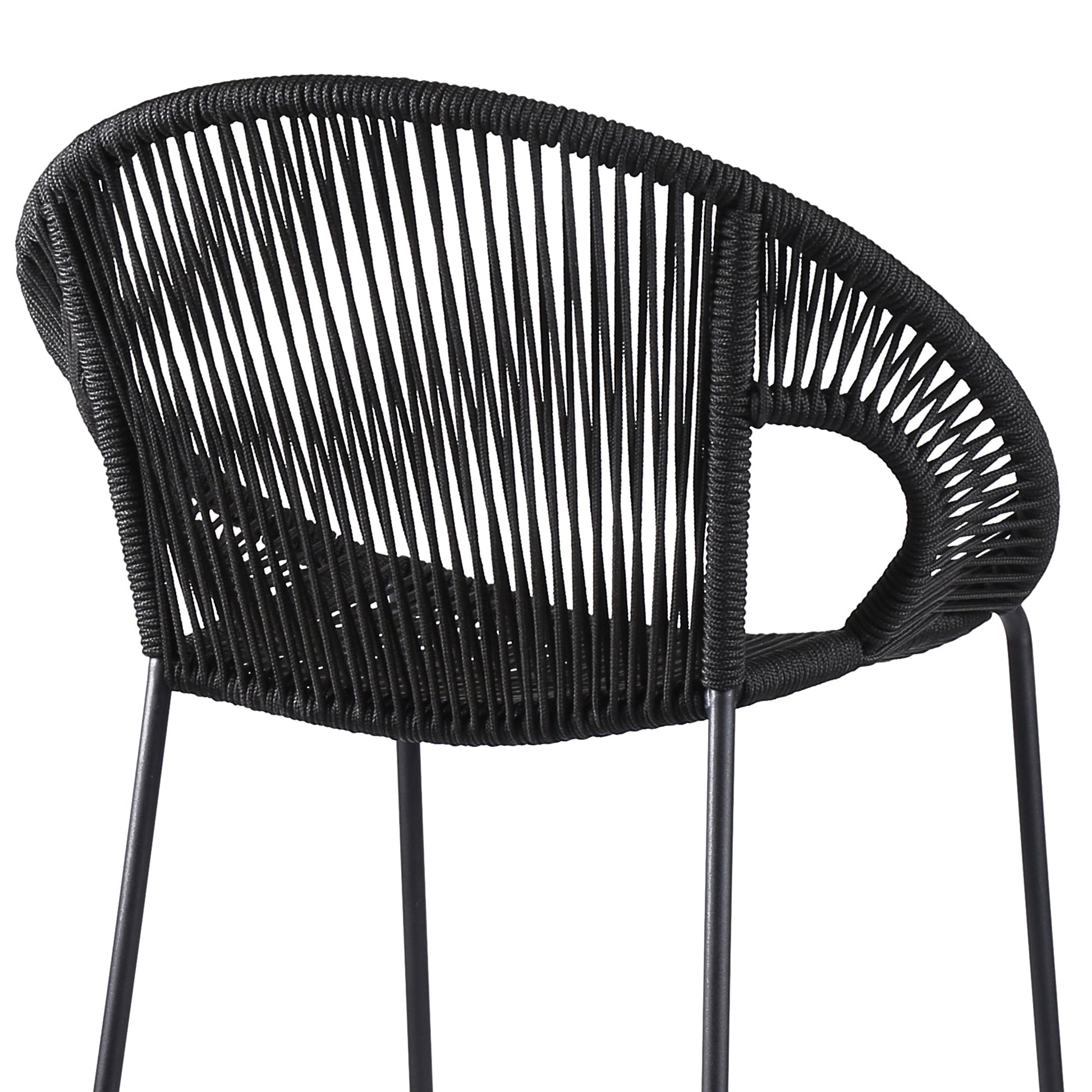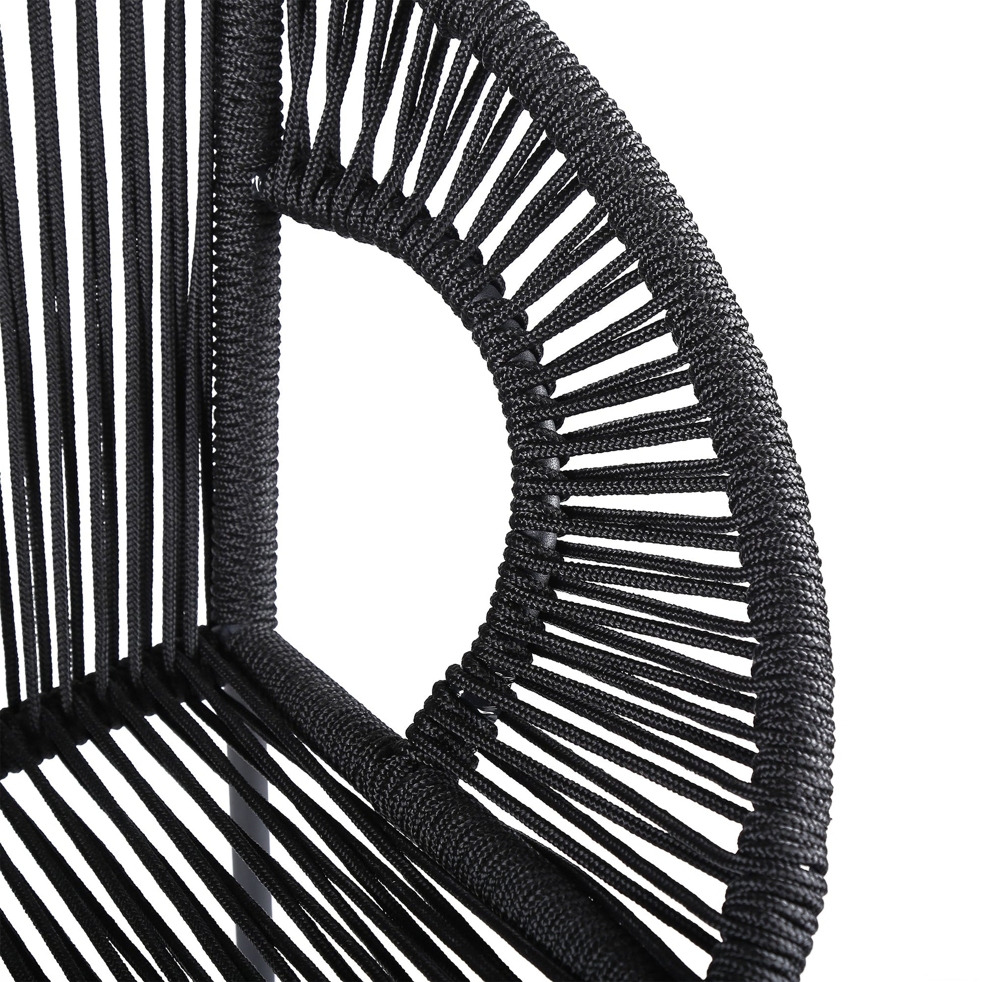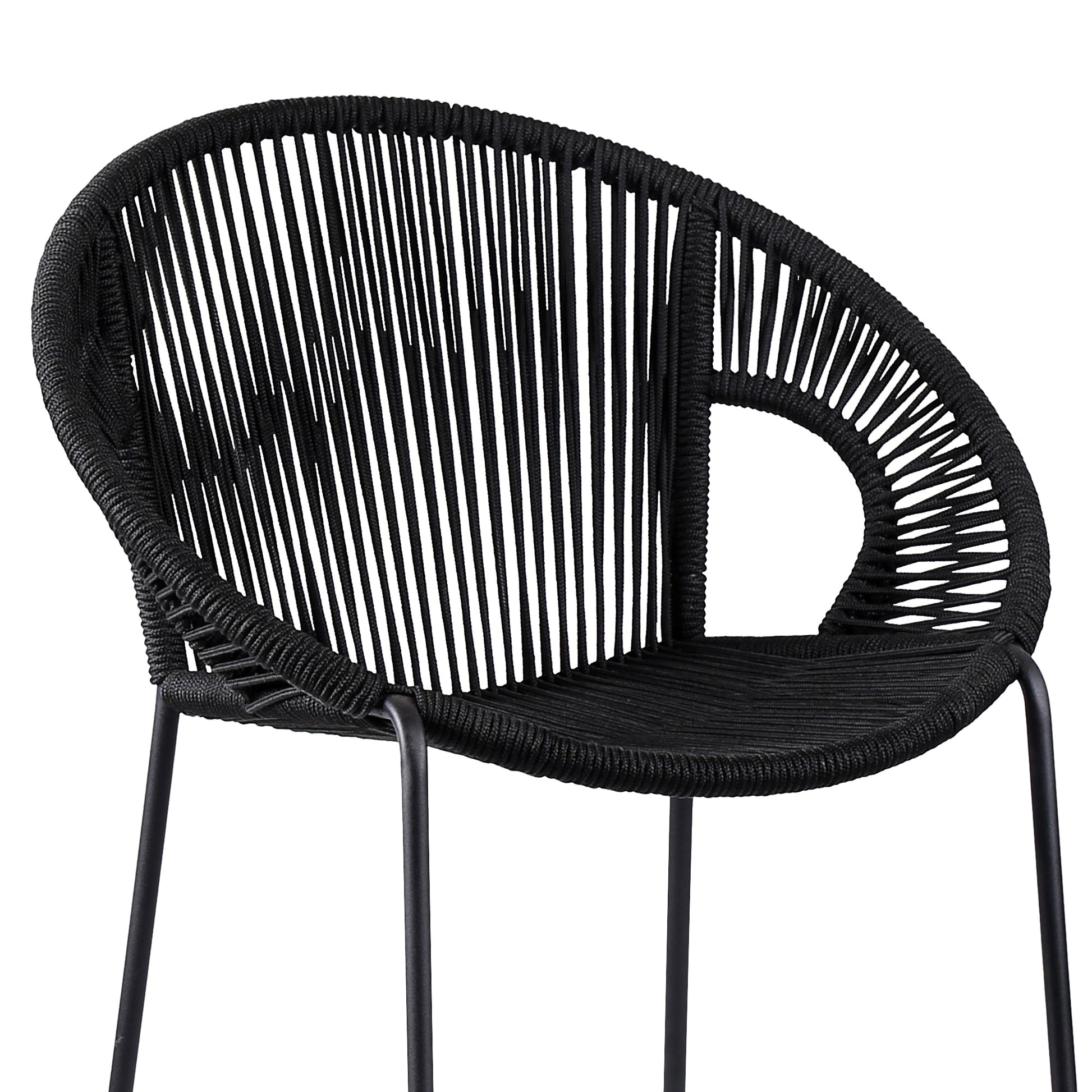 Crafted with durable steel legs finished in sleek black, this bar stool boasts exceptional craftsmanship that enhances its modern aesthetic. The seat and back are wrapped in resilient regatta rope cording, providing a remarkable level of comfort while allowing the elements to pass through. This unique feature not only promotes breathability but also adds a softness that rivals traditional fabrics, making it an inviting choice for any gathering.