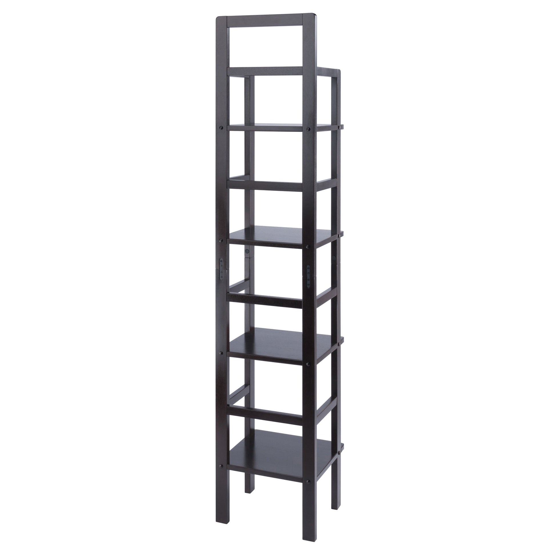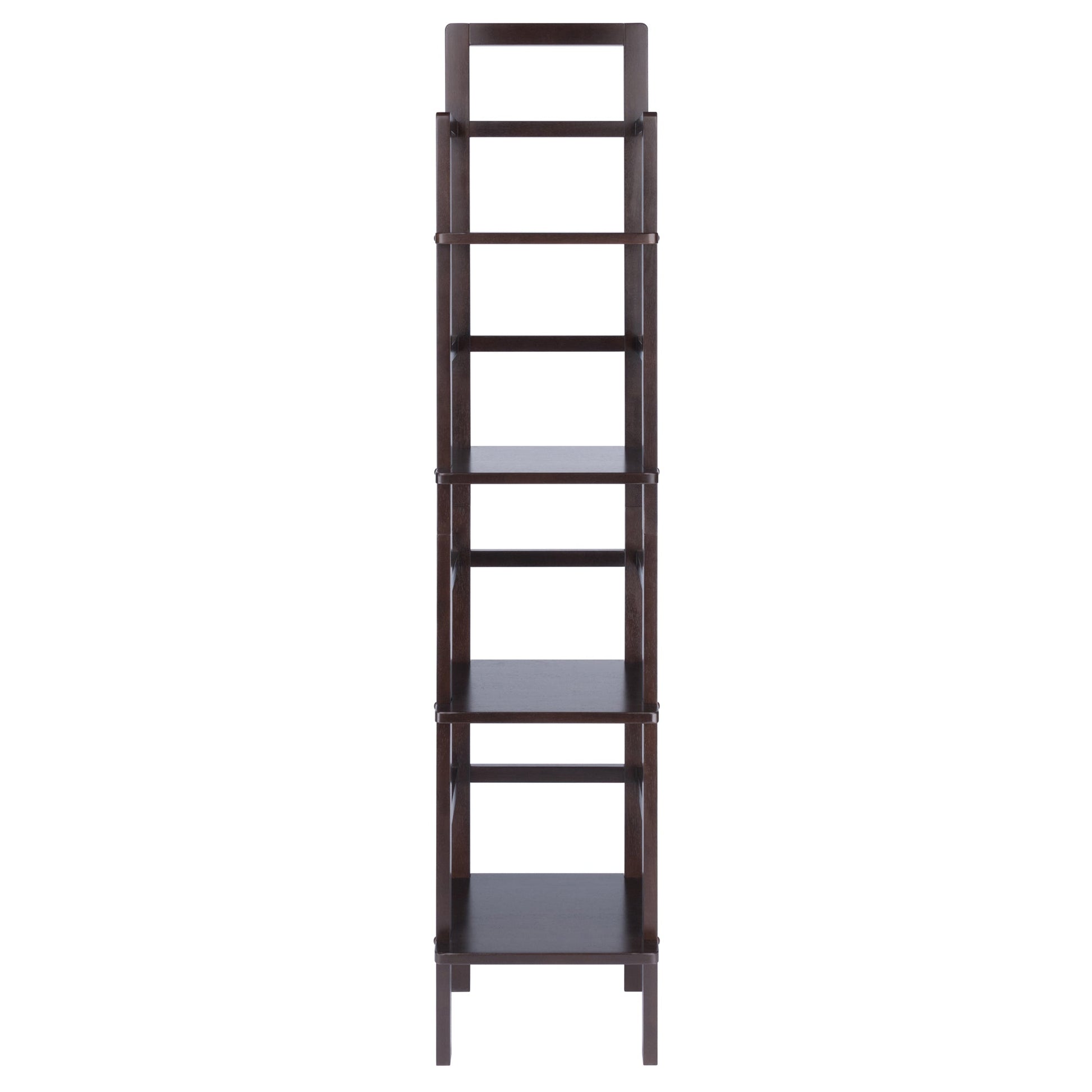 The Aiden Narrow Baker's Rack by Winsome combines the styling of an antique Tuscan baker's rack with a contemporary shelving unit that's perfect for smaller spaces. Bring a touch of open-concept styling to your kitchen where the rack can keep a basket of fruit, mixing bowls, and a few bottles of wine. Or use it in the living room to array your favorite plants, framed photos, or books. The rack also makes an ideal shelf unit in the bathroom for guest towels or decorative items. Made of Solid Wood in a rich Coffee finish, it has four shelves with nearly 15" of clearance between shelves for taller items. An ideal piece for apartment living or smaller rooms, the open styling provides storage with an airy feel. Shipped in one box with hardware needed for assembly.