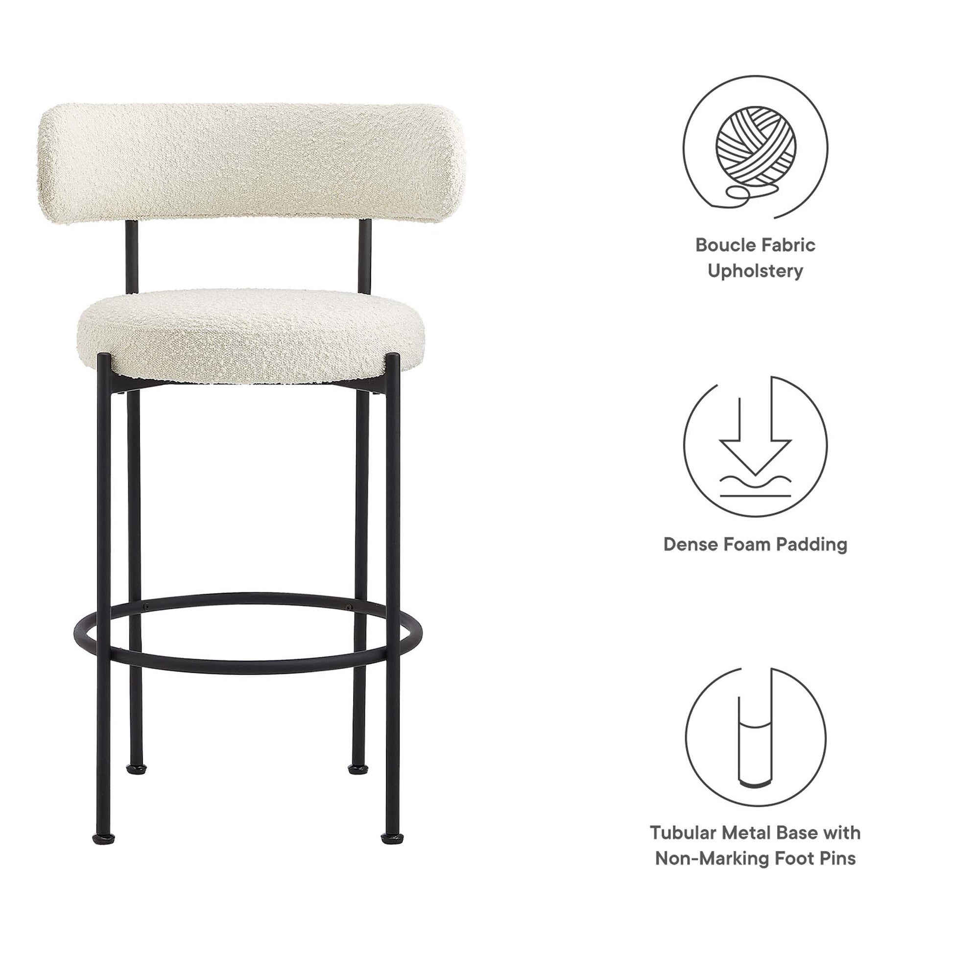 Albie Boucle Fabric Bar Stools Set of 2 by Modway EEI-6520-IVO-BLK