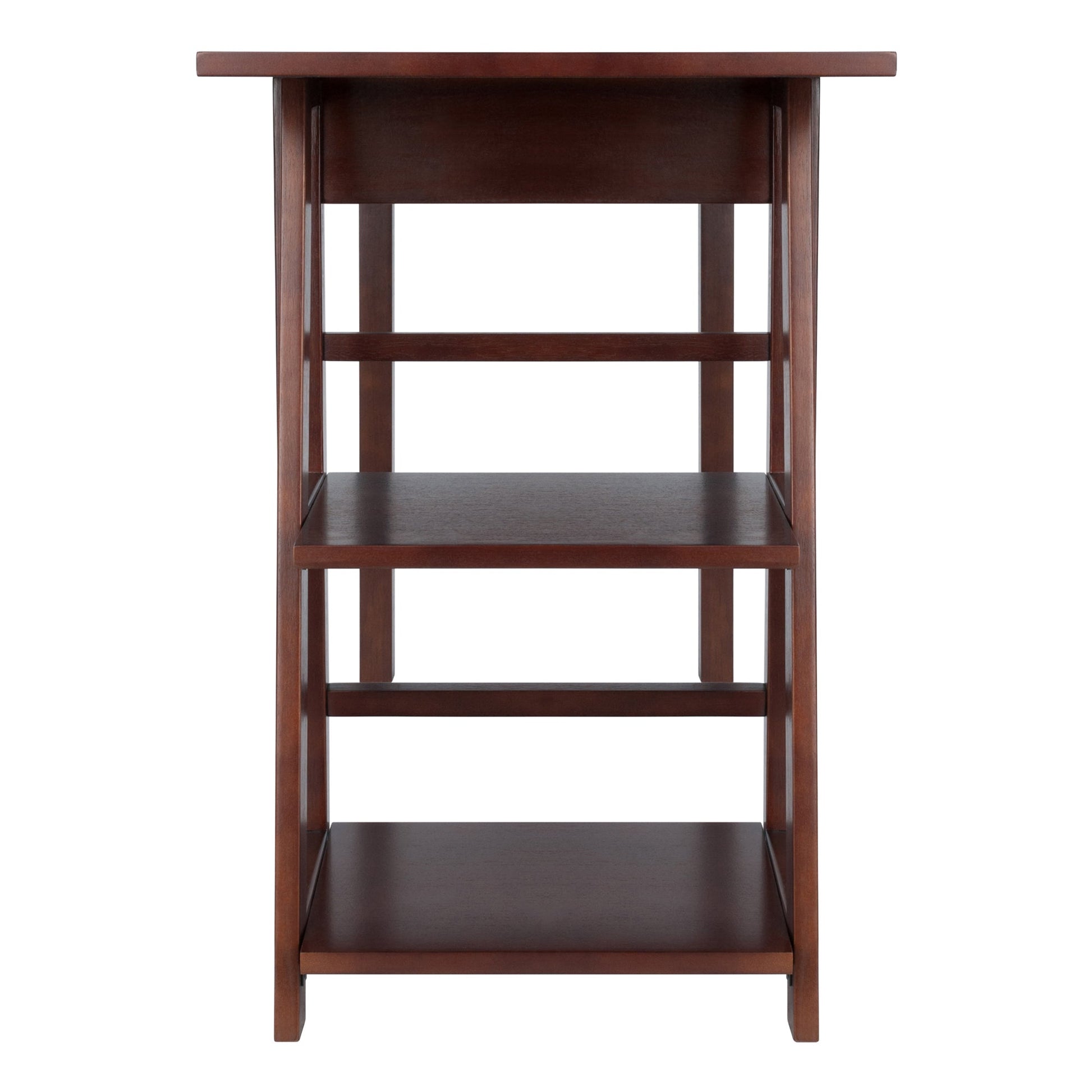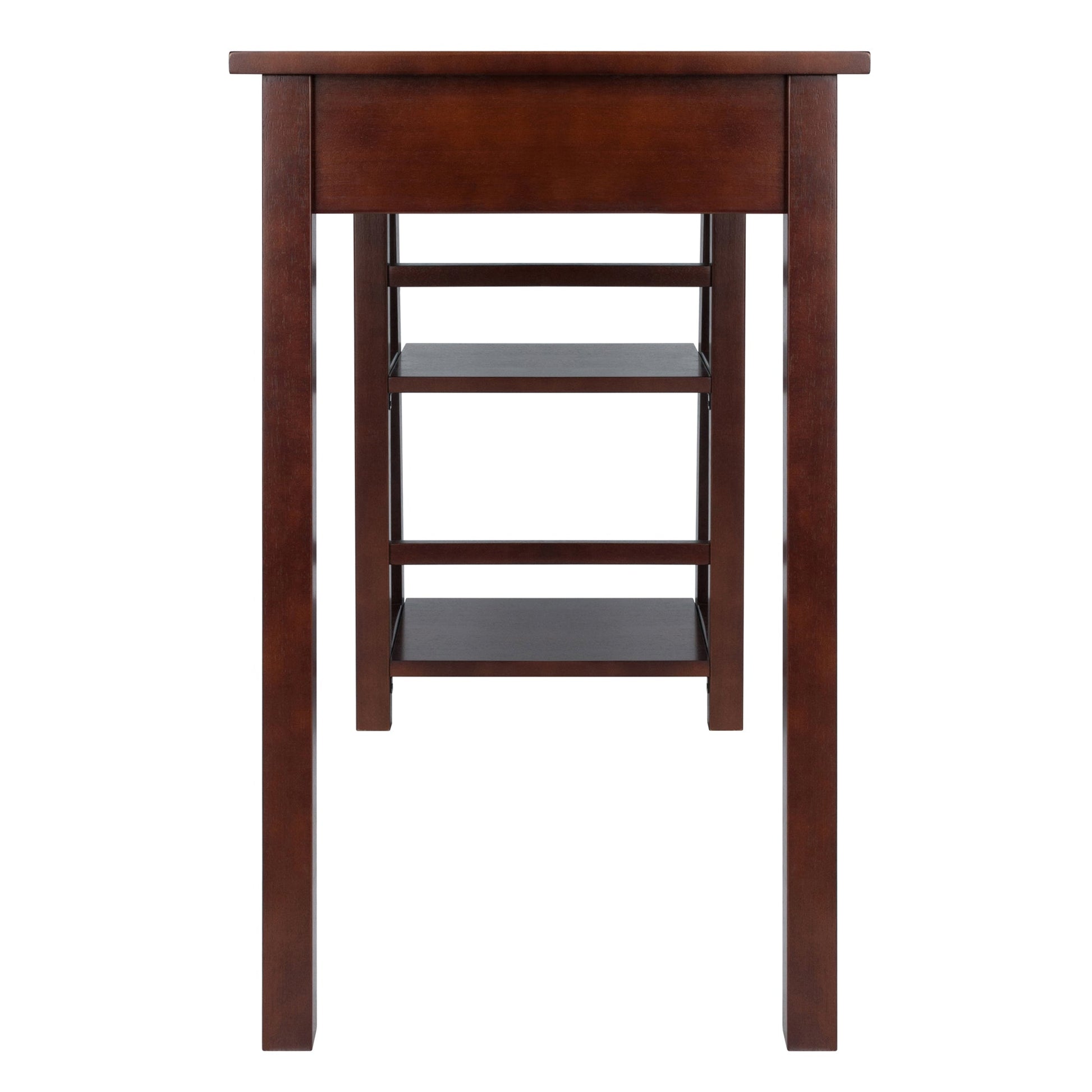 The Winsome Wood Aldric Writing Desk is the ideal home office desk for apartment living or smaller spaces. The desktop is wide enough for a computer monitor, speakers, and many of your working files, holding up to 70lbs and at only 20" deep won't overwhelm a room. This versatile desk features two spacious built in shelves on the side. Students will appreciate the angled bookshelf for textbooks, binders, and electronic devices. Or tuck the desk into a kitchen alcove, using the shelves for cookbooks, and have a convenient place to use your laptop while dinner is on the stove. The side shelves have ample clearance for file holders or large books and a weight capacity of 20lbs each. A center drawer keeps smaller office items or must have accessories within easy reach. Constructed of solid and composite wood in a rich Walnut finish that will mesh well with most home decor. Conveniently packed and shipped in 1 box, that includes the hardware necessary for assembling. Replacement part request can be submitted directly to the manufacturer within 60 days from date of purchase.