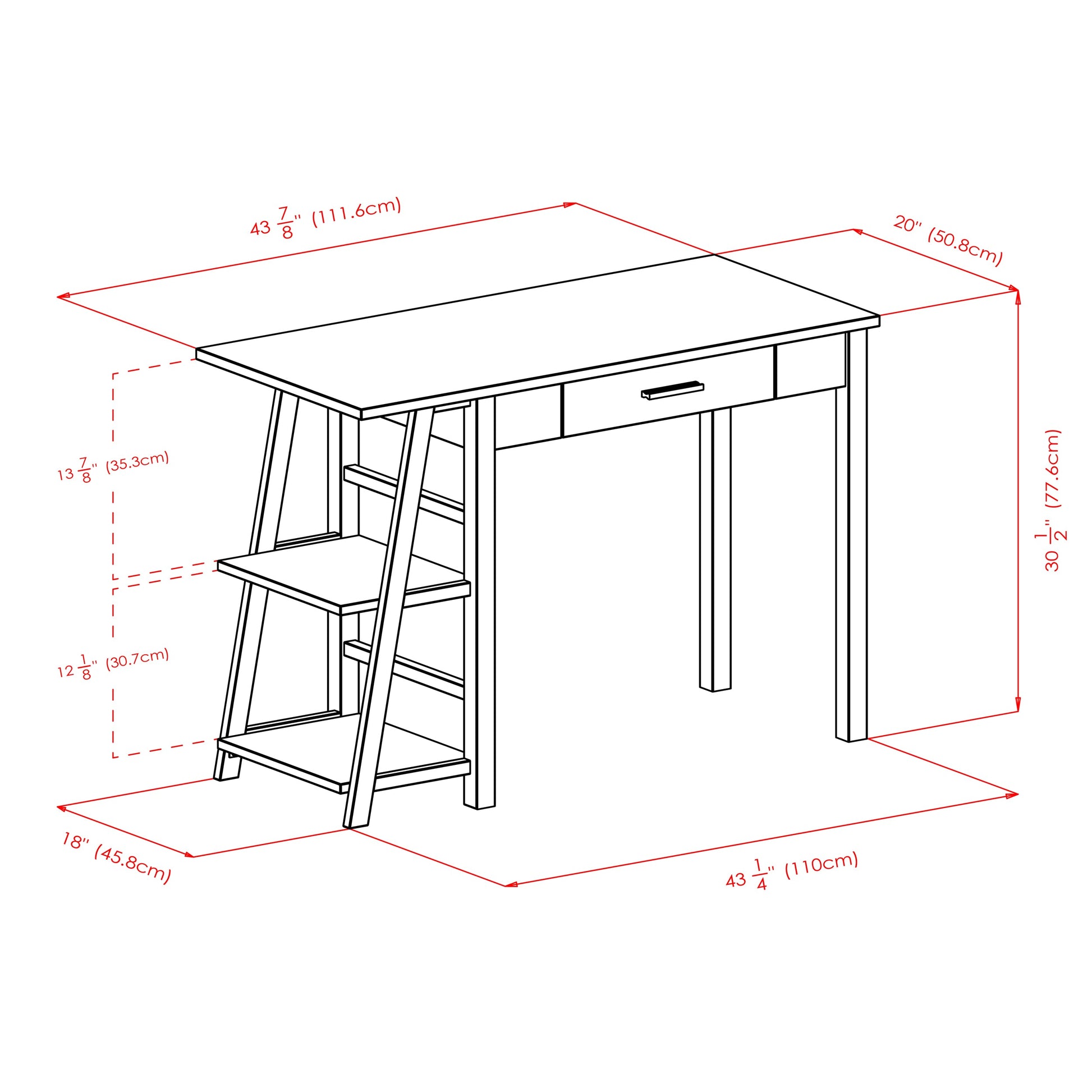 Overall dimensions of desk: 43.9"W x 20"D x 30.5"H