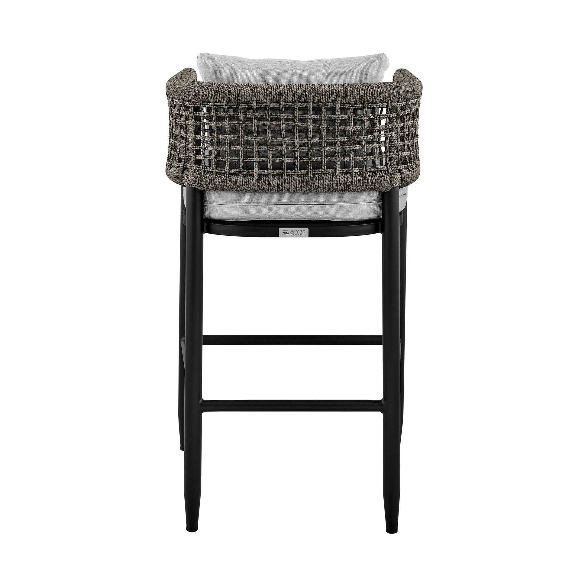Alegria Outdoor Patio Bar Stool in Aluminum with Rope and Cushions