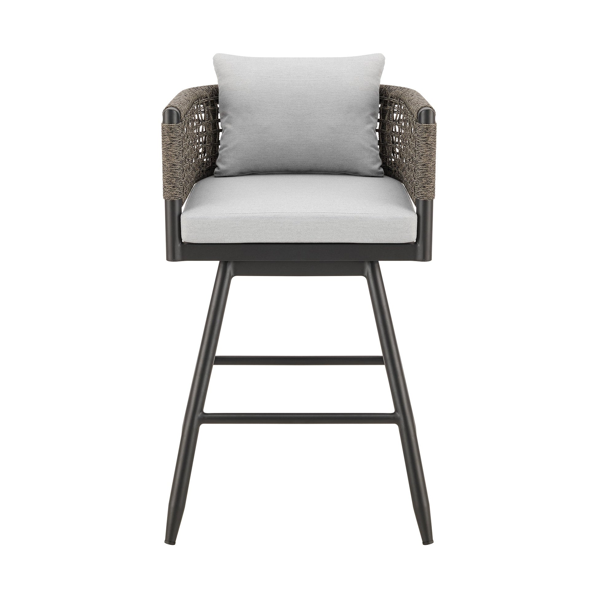 Alegria Outdoor Patio Swivel Stool in Aluminum with Gray Rope and Cushions