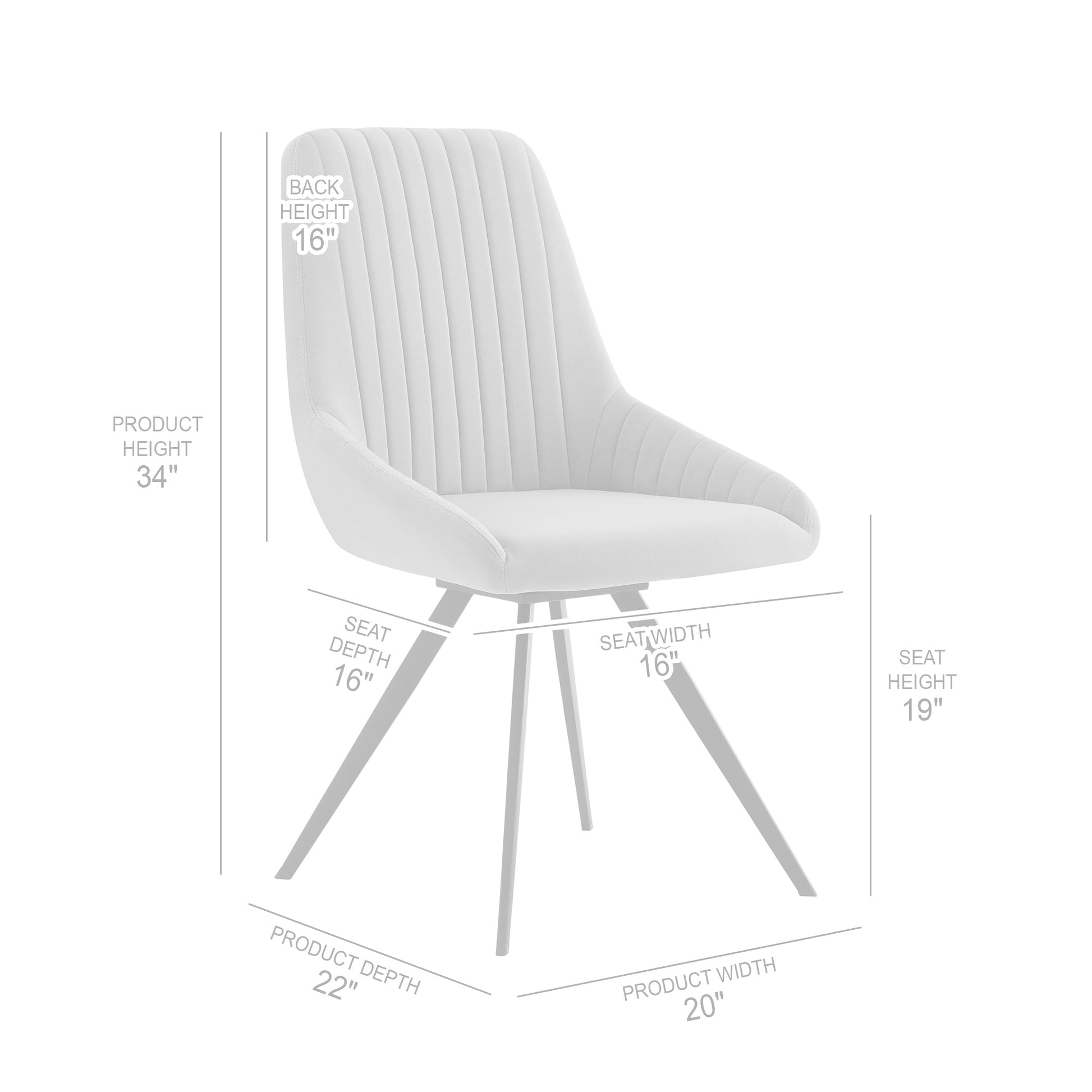 Bring the Alison Gray Velvet Set of Two Dining Chair from Armen Living into your home! The fabric upholstery is luxuriously wrapped around the entire seat. Featuring a wide back and spacious seat, its metal swivel mechanism allows you to turn and glide a full 360-degrees. The clean geometric upholstered lines add a textured look to this chair, covering the ultra-comfortable foam-padded cushion. The refined look of the Alison will update the decor in any dining room, bar or lounge area, or wherever you decide to place it! This wonderful chair features a sturdy metal frame that assures dependability and will give you years of enjoyment. Comes in a set of 2 dining chairs.