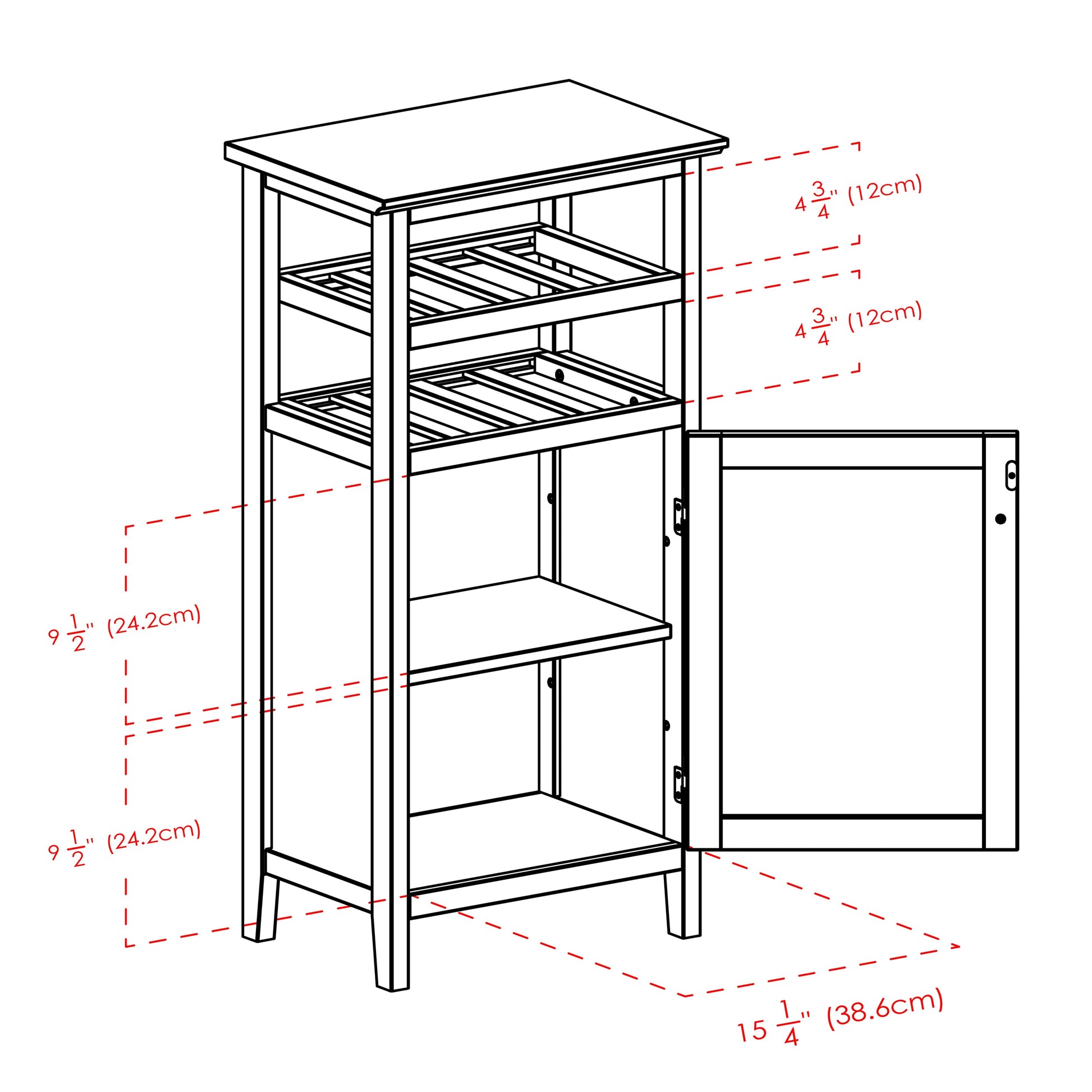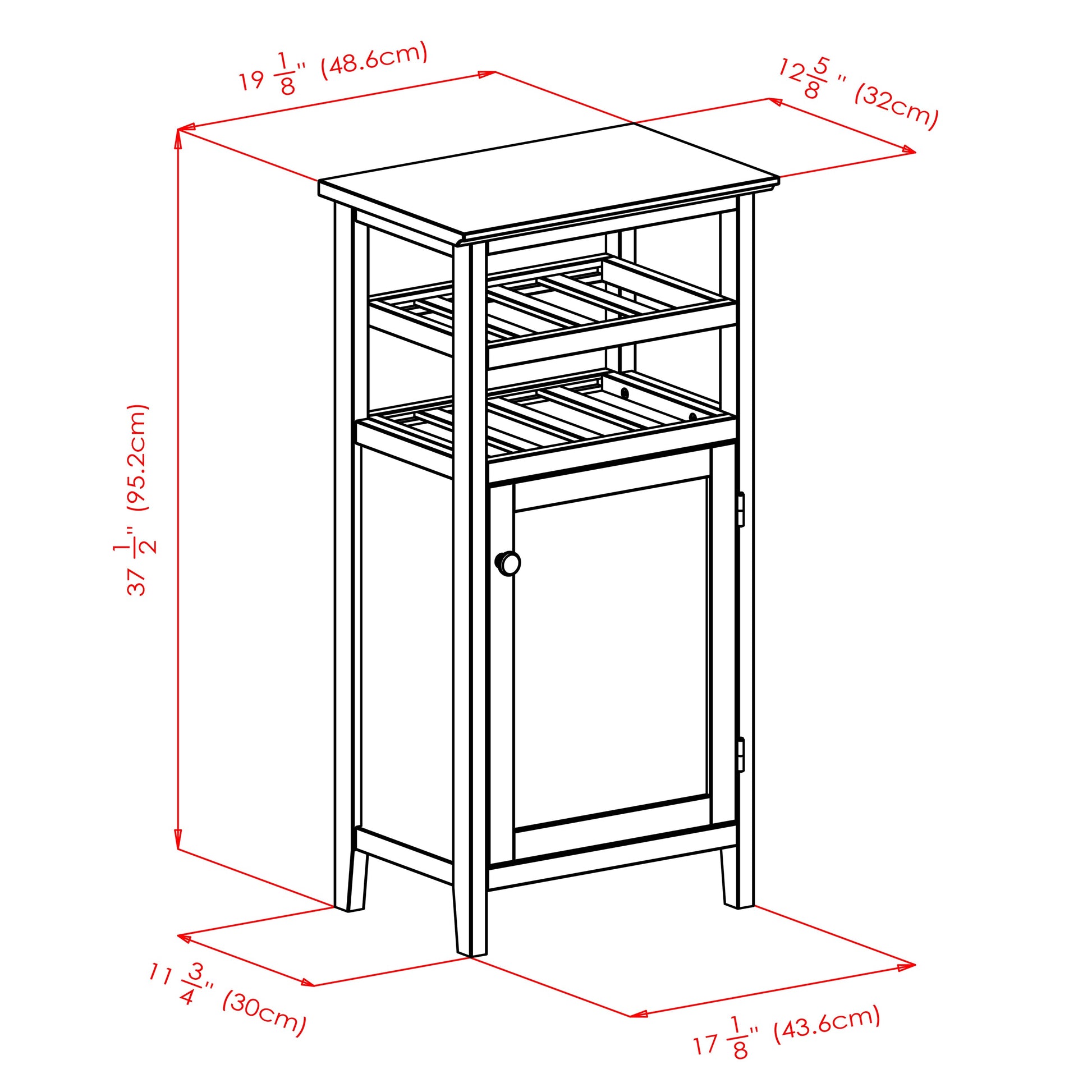 The Alta wine storage shelf brings a contemporary solution to your wine storage and entertaining needs with its clean lines, espresso finish, and simplistic design. The two top shelves can be used either for 8 wine bottles or 4 wine bottles on the top shelf and accessory storage on the bottom. Behind the glass cabinet door is a 15.2"W x 10.5"D x 19.7"H storage space with a middle shelf where wine glasses can be stored. The overall size of this storage is 19.1"W x 12.7"D x 37.4"H. Wine rack dimensions are 15.2"W x 11.5"D x 4.8"H.Dimensions : 19.13 in. Wide 12.72 in. Deep 37.48 in. High