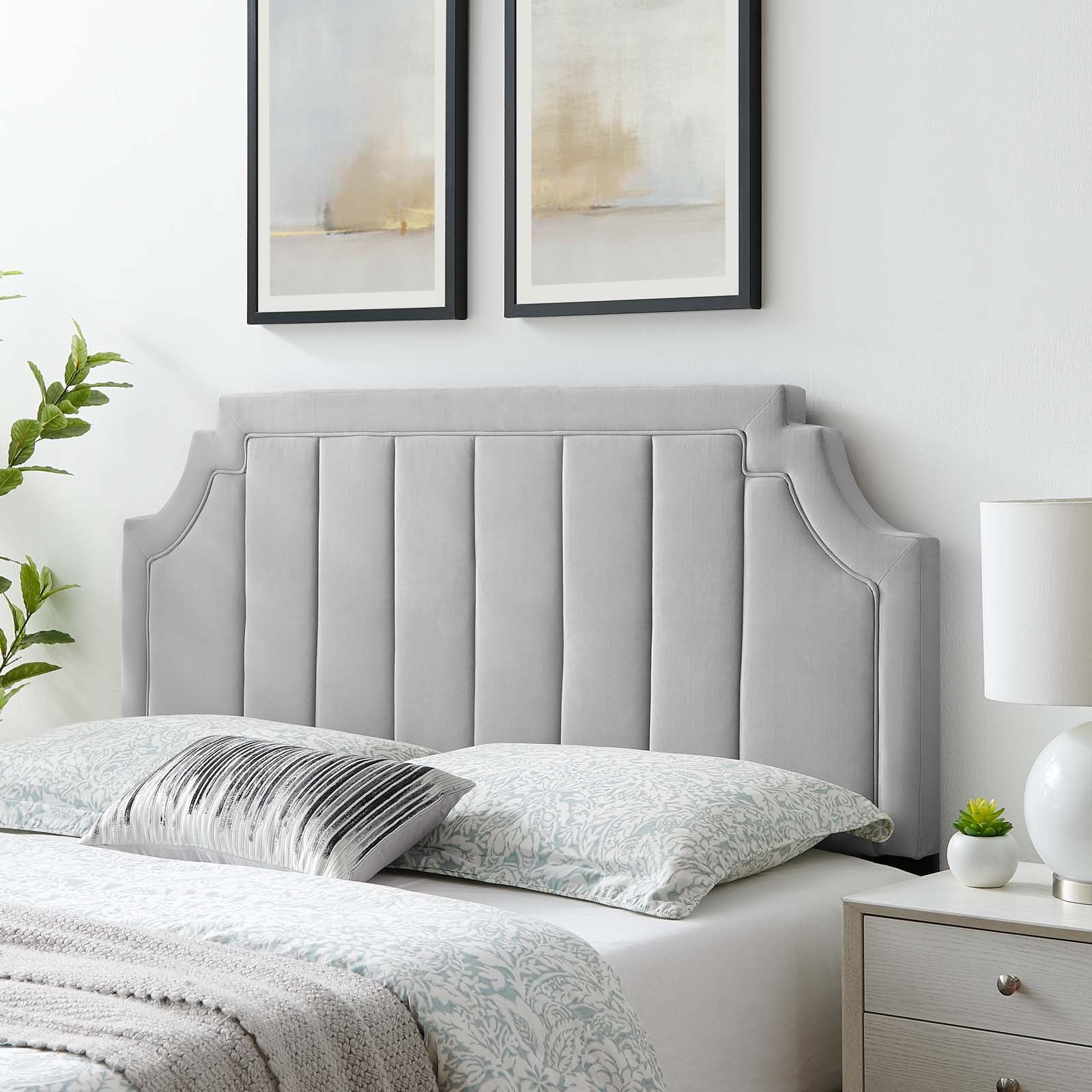 Alyona Channel Tufted Performance Velvet Full/Queen Headboard Light Gray MOD-6347-LGR