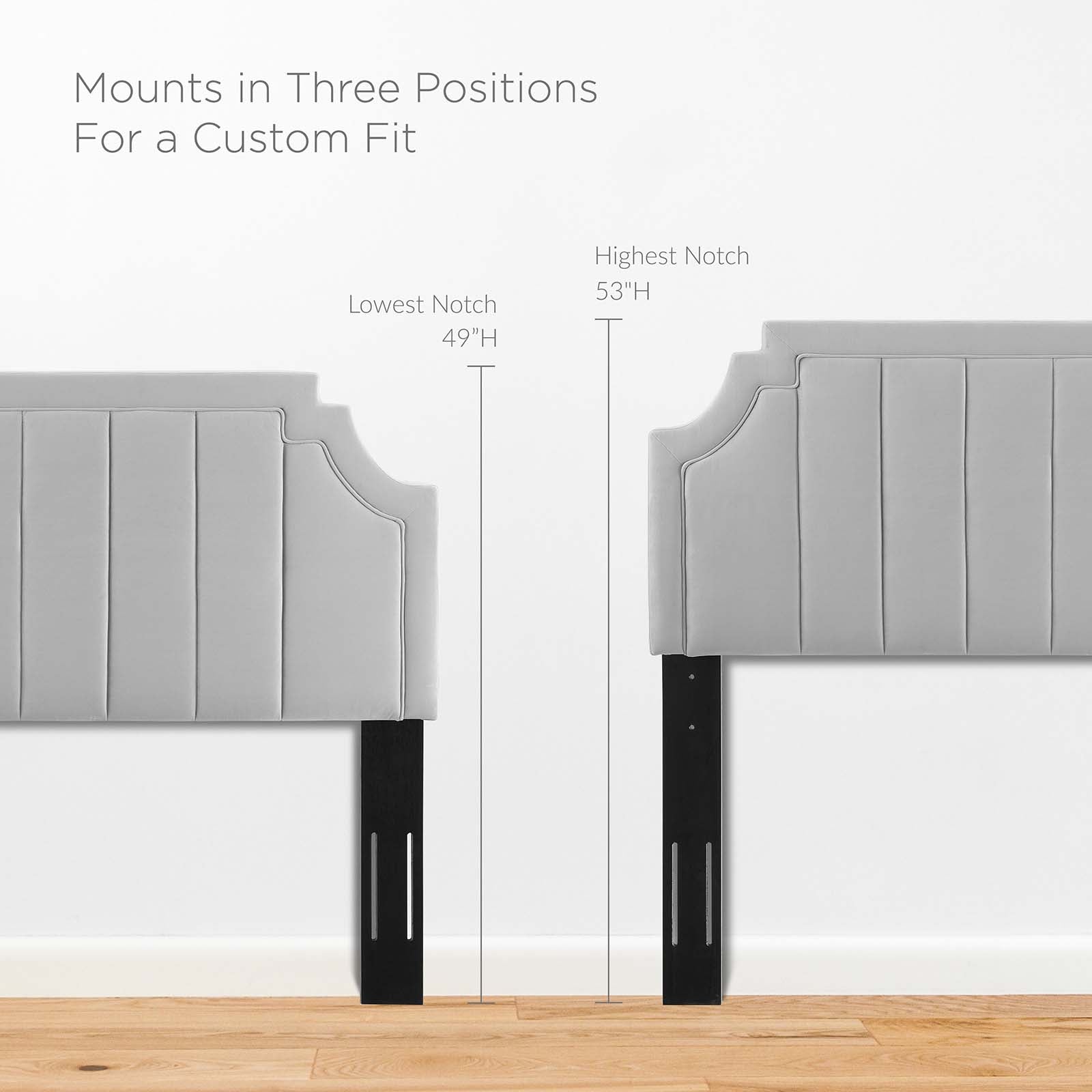 With vertical tufting, a unique silhouette, and luxurious texture, the Alyona Channel Tufted Performance Velvet Full/Queen Headboard brings glam deco style and vintage modern elegance to your master bedroom or guest bedroom. This full or queen size headboard features a beautiful shape, channel tufting, and subtle French piping. Upholstered in soft, stain-resistant performance velvet, this padded headboard offers supportive comfort while sitting up in bed resting or relaxing. A beautiful backdrop for a variety of bedding styles, this adjustable headboard fits full or queen beds with its three mounting positions. Assembly required.