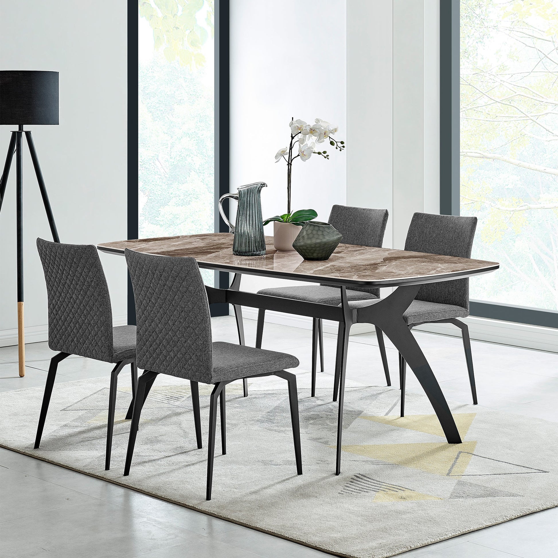 The Andes Dining Table from Armen Living is a contemporary dining table that adds a touch of pure sophistication to a kitchen, bar or lounge area, or even a breakfast nook. It features a strong and striking black metal 4-legged base, giving it sleek and stunning visual appeal. The rectangular ceramic top completes the elegant look, while also contributing to the durability of this piece - not only easy to clean but will last years for you and your home! Modern in style, this table is perfect for relaxing with a glass of wine after work or enjoying entertaining a large group of guests. Pair it with any of the dining chairs from any of our collections at Armen Living.