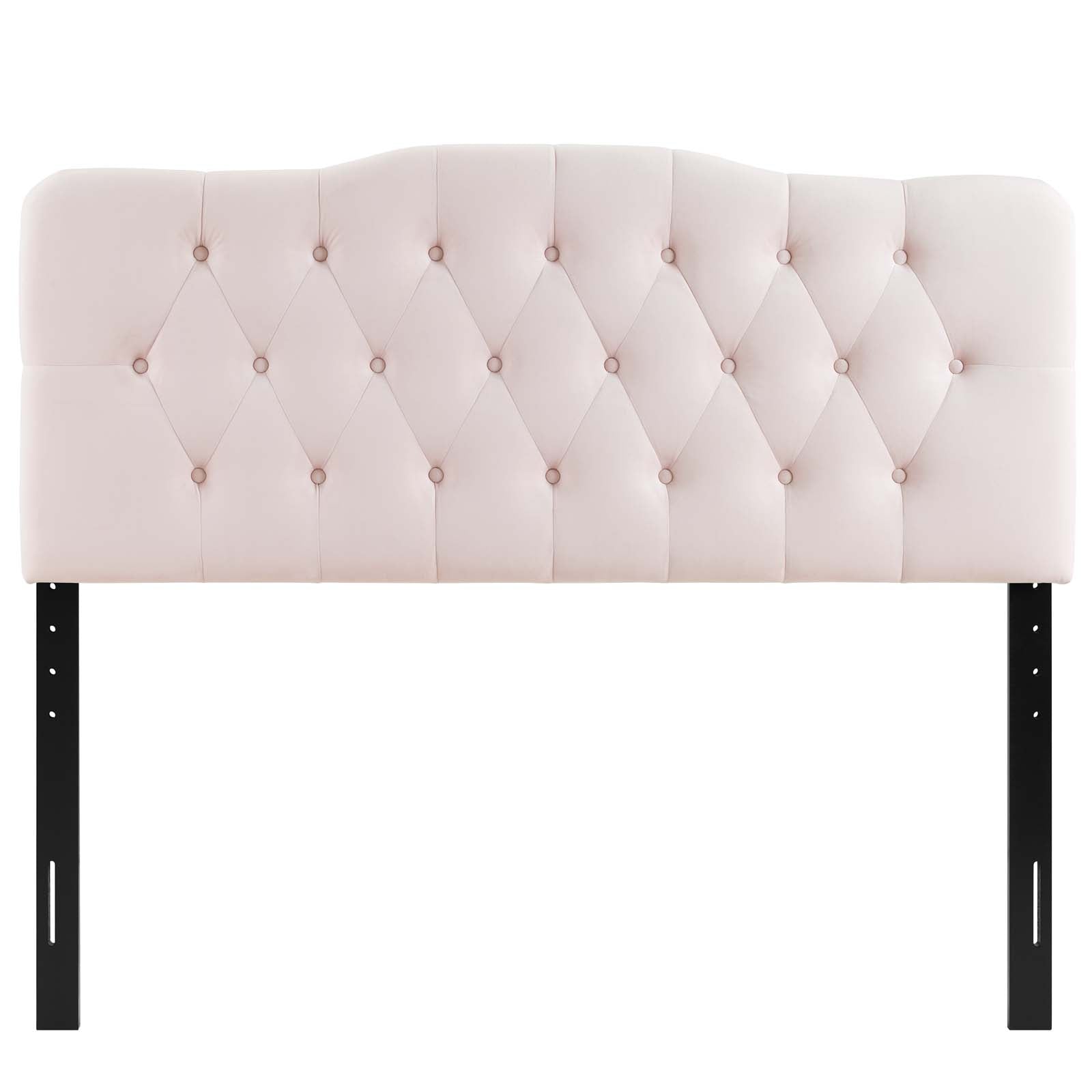Follow the gentle curves and winsome style of the Annabel Diamond Tufted Performance Velvet King Headboard. Annabel features elegant diamond tufting within a slightly curved silhouette for plush vintage glamour and ageless charm. A delightful focal point for any master suite or guest room, this upholstered velvet headboard for king bed frames provides a soft, stain-resistant update for luxurious comfort while relaxing, reading, or conversing in bed. Solidly constructed from plywood and fiberboard with dense foam padding, this king size velvet headboard comes with five mounting positions that are height adjustable from 45" - 52.5".