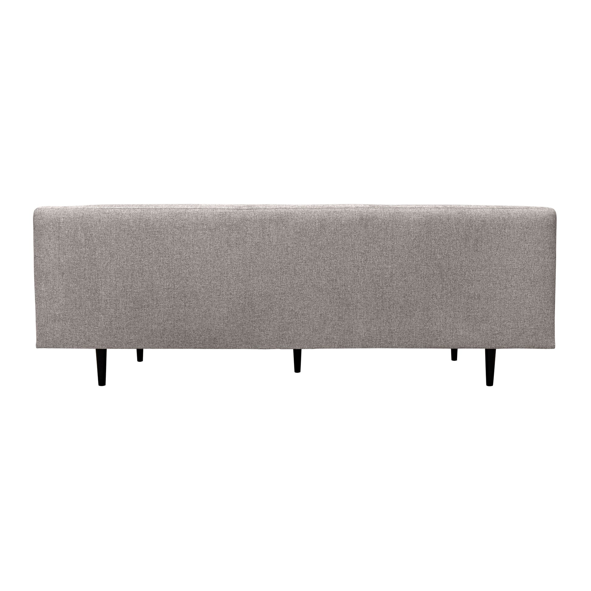 Give a chic and glamorous update to your living space with our Annabelle Fabric Sofa with Black Wood Legs. The clean lines and sophisticated details of the couch lend a modern and elevated edge to any room. A stunning tufting detail upon the back and arms lend a dose of charm and elegance. Elevated upon cylindrical wooden legs to attain a modern and airy profile, the Annabelle brings traditional chesterfield and modern style themes together. The sofa features a sheltering silhouette and generously padded arms to ensure a comfortable stay. Completed with boxy and generously cushioned seats, the sofa invites you to sink in and relax. It remains an ideal piece for anchoring your family room, man cave, den, or formal living space. Allowing you to entertain in style, our sofa offers a plush respite for your family and friends. It is available in a variety of materials and finishes to create the perfect look for your home. The Annabelle Sofa comes in Bluestone or Fossil Gray Velvet, or Gray Fabric with Black Wood Legs.