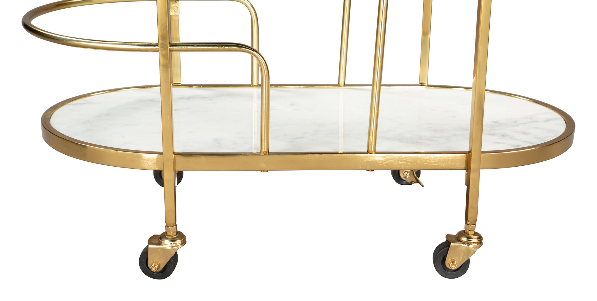 Introducing the Antalya Bar Cart, a stunning and modern piece of furniture that will add a touch of elegance and functionality to any living room or dining area. The bar cart features a deco-inspired design with a combination of brown lacquered acacia wood and brushed steel.