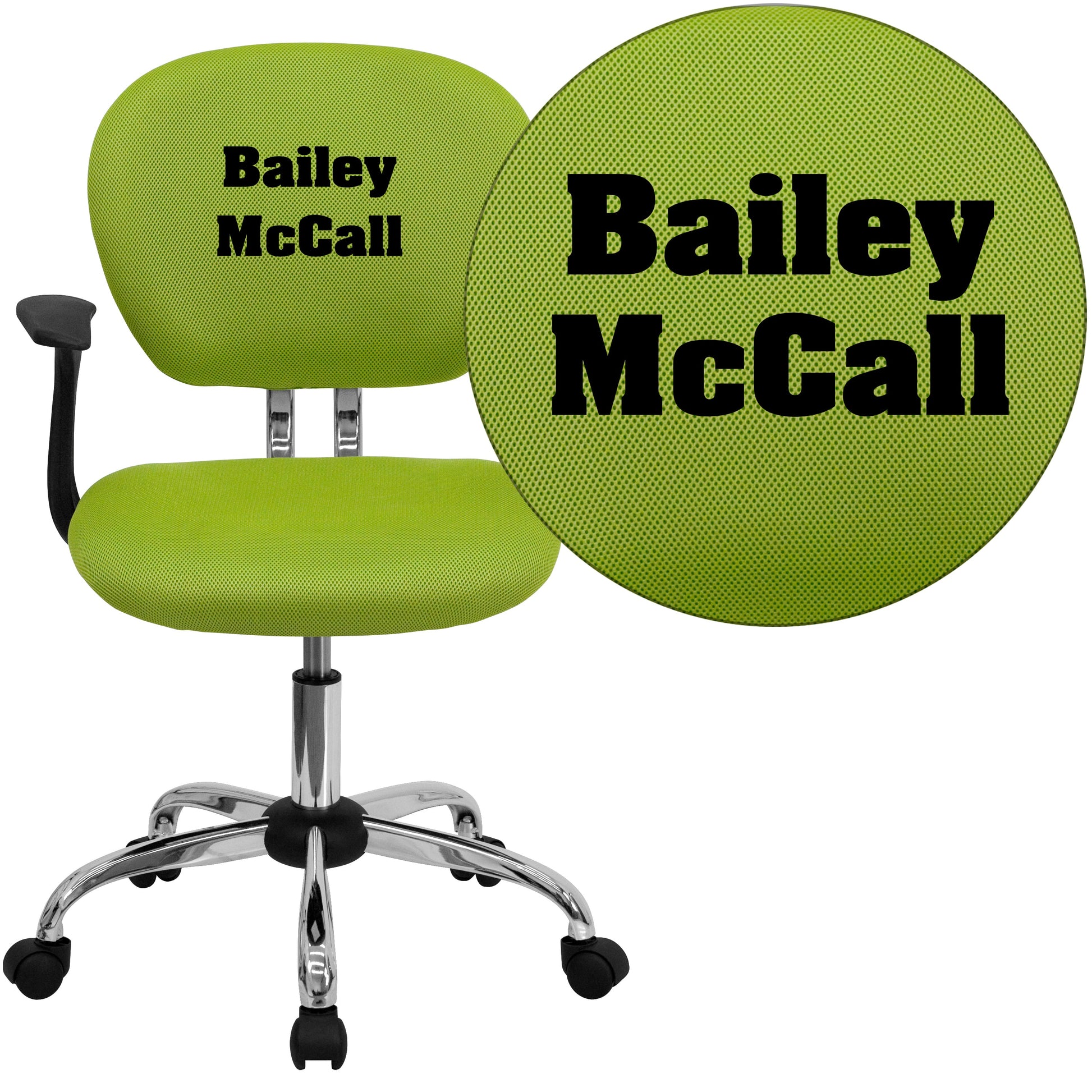 Beverly Personalized Mid-Back Apple Green Mesh Swivel Task Office Chair with Chrome Base and Arms Dimensions: 23.5"W x 25.5"D x 33.5" - 37.5"H