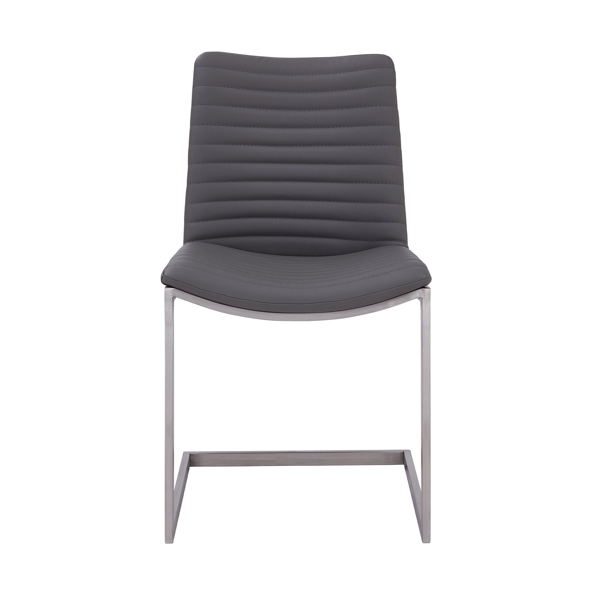 Impeccable style meets high-design in our contemporary April dining chairs. It's Brushed Stainless Steel frame and clean silhouette is upholstered in a beautiful Gray Faux Leather that is both neutral, soft to the touch and durable. The modern look of this dining chair allows it fit perfectly in your contemporary home. It is smart around a dining table, or as additional seating around your home.