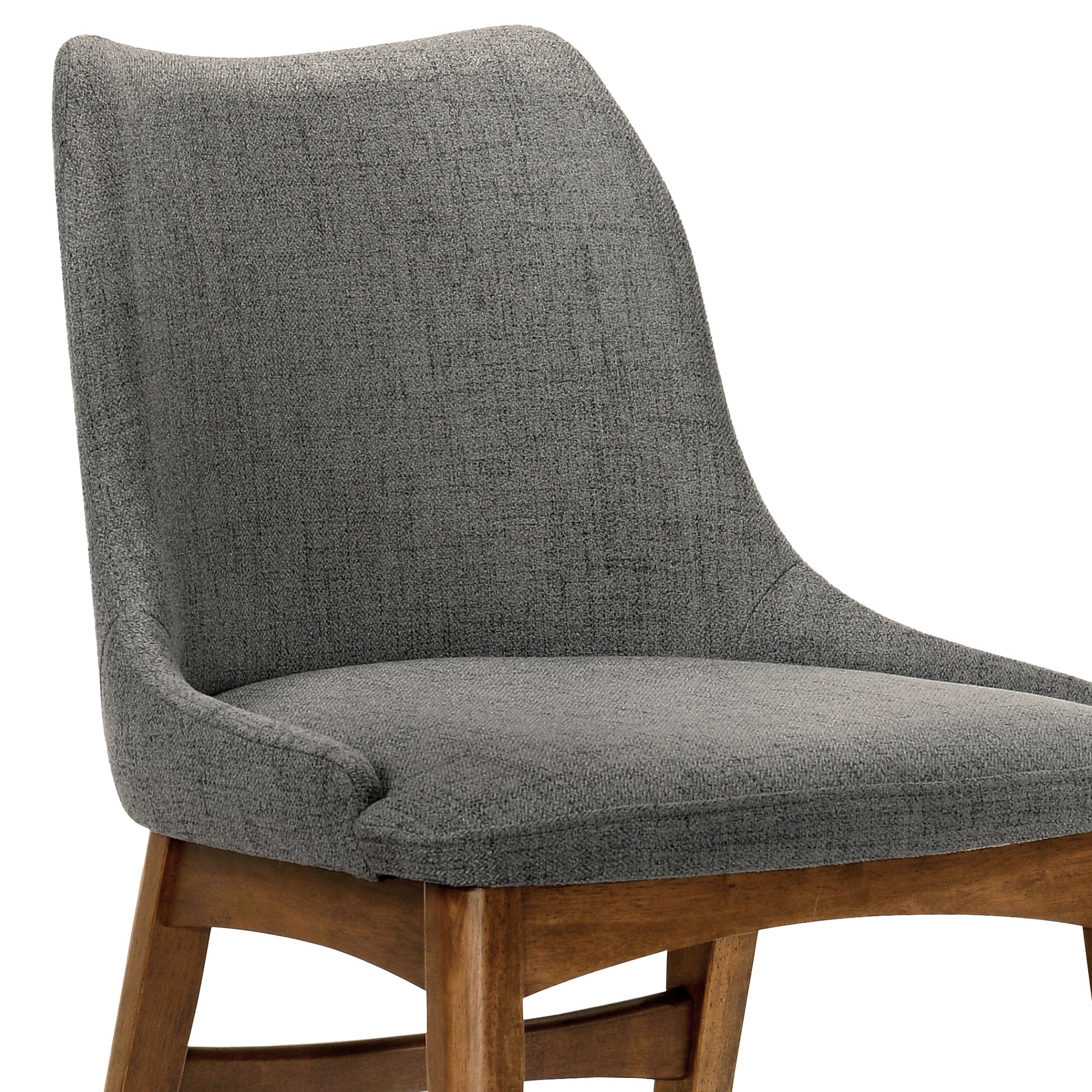 The Arcadia and Azalea 48" Round Charcoal and Walnut Wood 5 Piece Dining Set is an ideal addition to any kitchen or dining room. The Arcadia 48" round dining table in offers a clean and simple aesthetic that is stylish and functional. Hints of Scandinavian design and a mid-century modern feel come together to create the perfect space to share a meal with friends and family. With the 48" diameter table, you can easily pull up a few extra chairs and easily accommodate more guests. Round tables are great because they can accommodate the most people. The Azalea dining chairs feature soft fabric upholstery luxuriously wrapped around the entire seat - covering the ultra-comfortable foam padded cushion. Featuring a wide back and spacious seat, you never have to feel confined to a small space. The clean, sleek, and geometric wooden legs add a modern style to this chair - also assuring dependability that this chair will last and give you years of enjoyment. The Arcadia and Azalea 48" round 5-piece dining set is available in your choice of a black wood finish with gray upholstered chairs or a walnut wood finish with blue, charcoal or orange upholstered chairs.