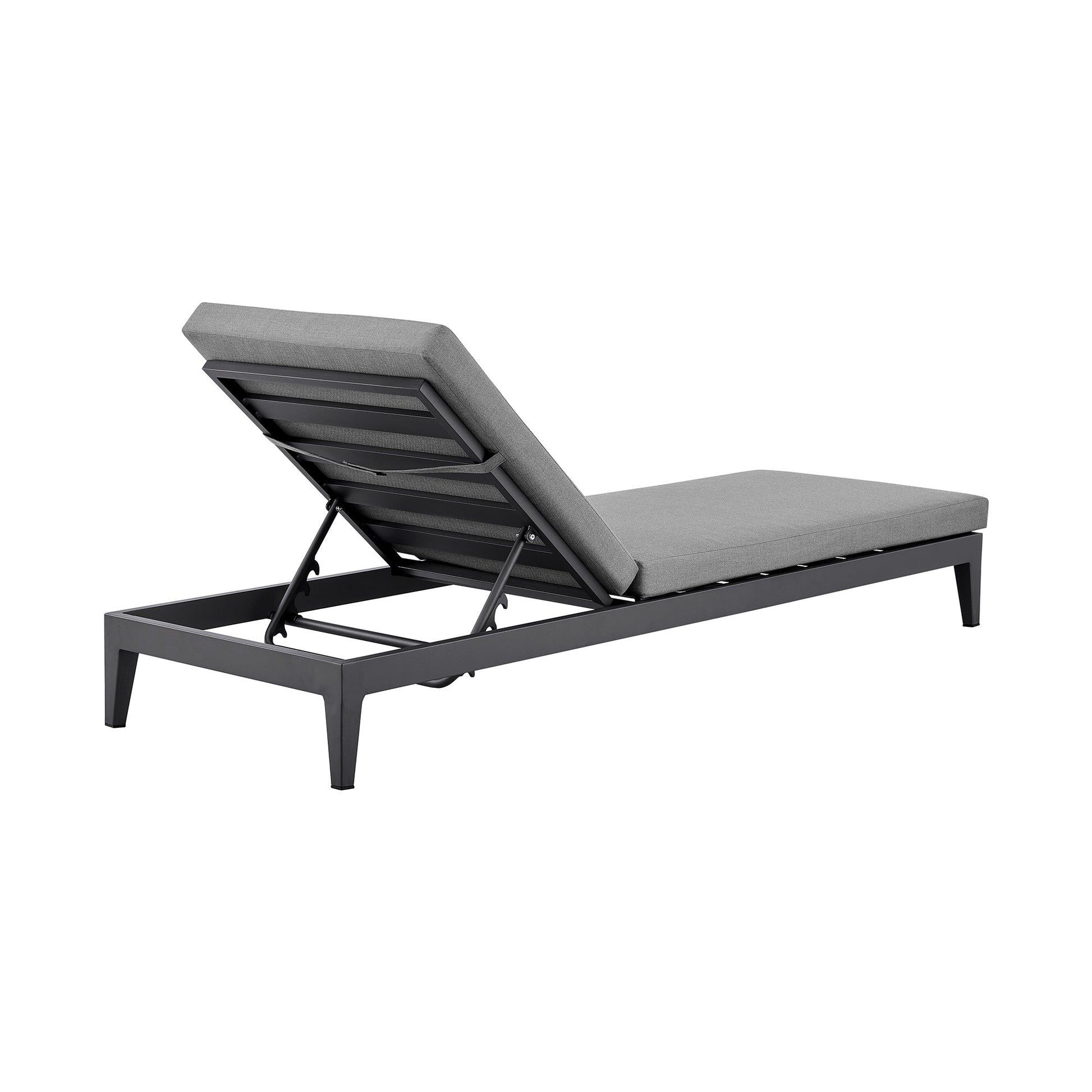 Argiope Outdoor Patio Adjustable Chaise Lounge Chair in Aluminum with Gray Cushions