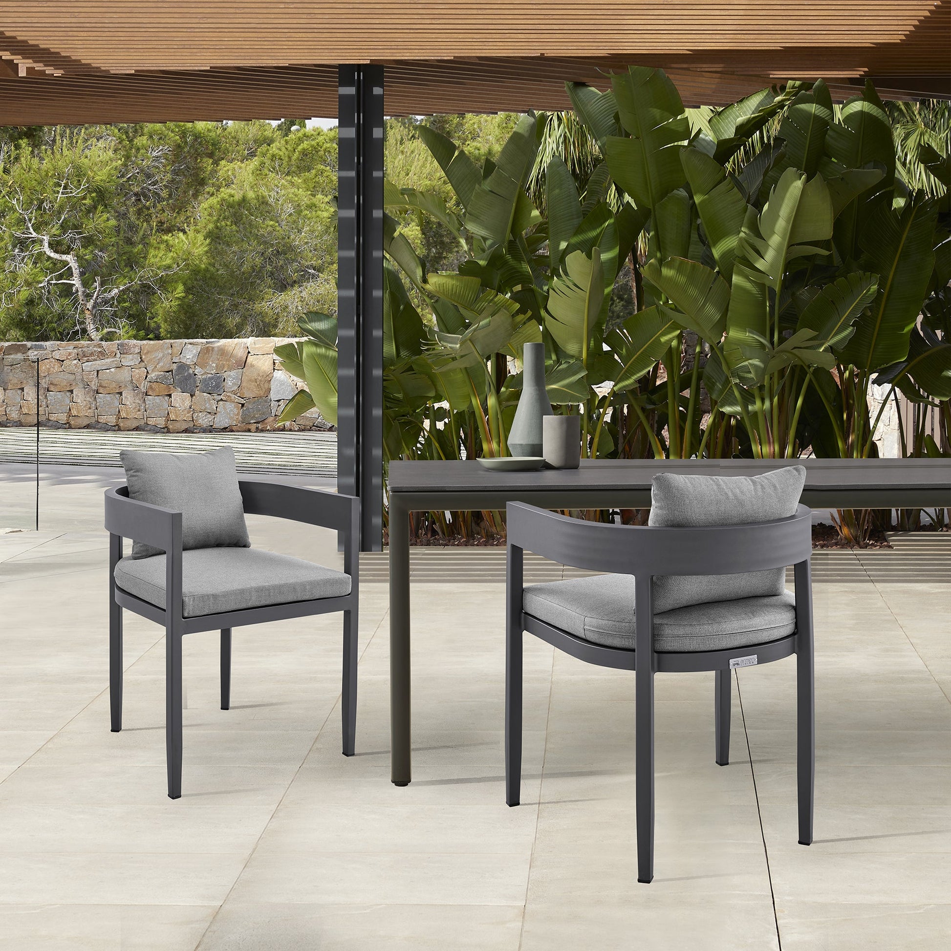 Argiope Outdoor Patio Dining Chairs in Aluminum with Gray Cushions - Set of 2