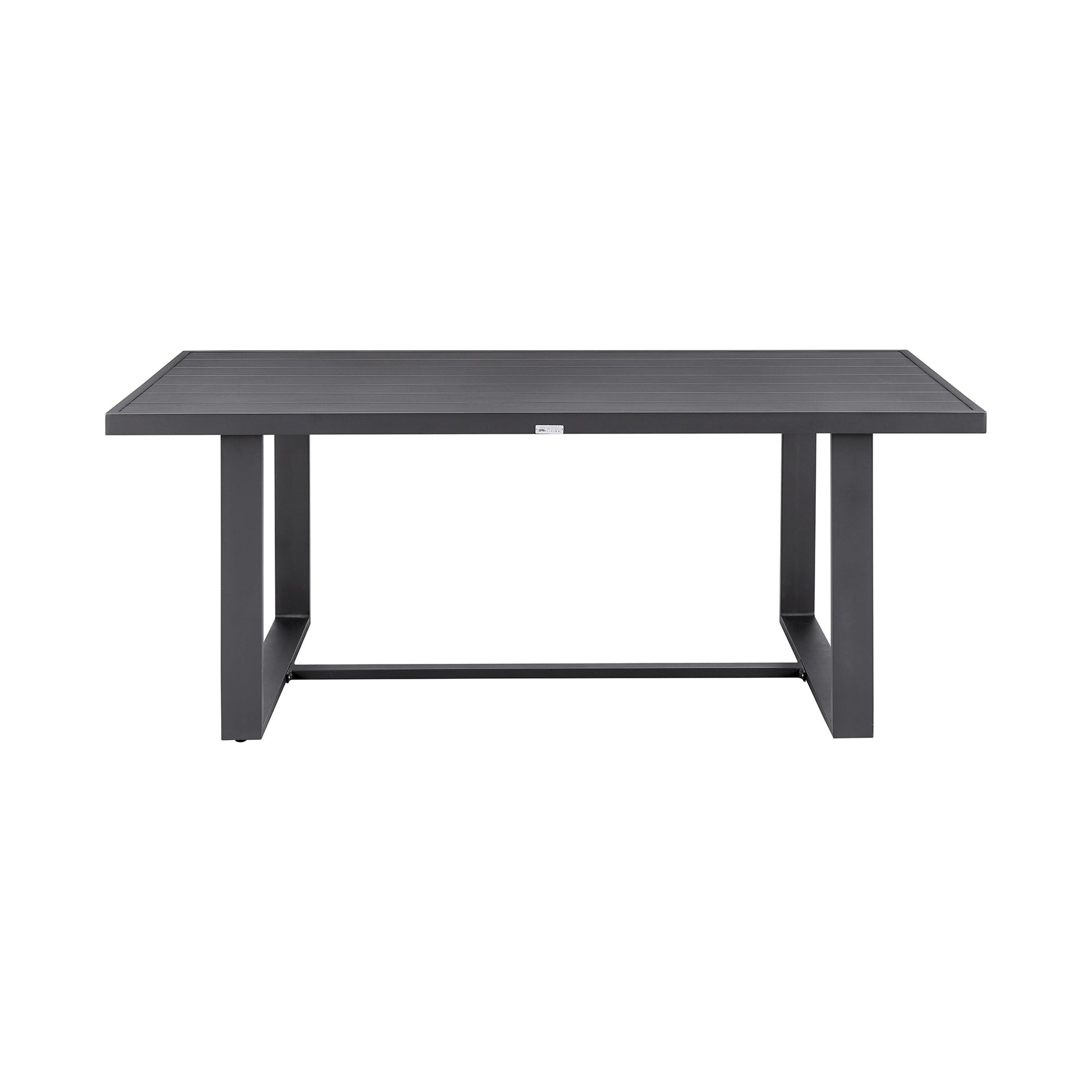 Dine out with fresh and open-air with the Argiope outdoor dining table from Armen Living. The Argiope outdoor dining table features a beautiful dark gray powder-coated finish, and its size accommodates 6-8 seats comfortably. Sleek and minimal, this patio table can complement any outdoor space. This is the perfect piece of outdoor patio furniture for enjoying morning breakfast, afternoon meals, and candlelight dinners, the dining table remains a welcoming addition to a patio, backyard, pool area, garden, or screened in porch. The slats upon the table bring visual interest and they help the elements easily pass through, adding to this table’s durability. It is made with lightweight, sleek, and sturdy powder-coated aluminum making it easy to move to your desired location. This patio table features a multi-layer powder coating for effective protection from UV, rust, weather, everyday wear, and tear. The material enables this piece of outdoor patio furniture to withstand the effect of sun, rain, and snow, to enjoy your outdoor spaces in every season.