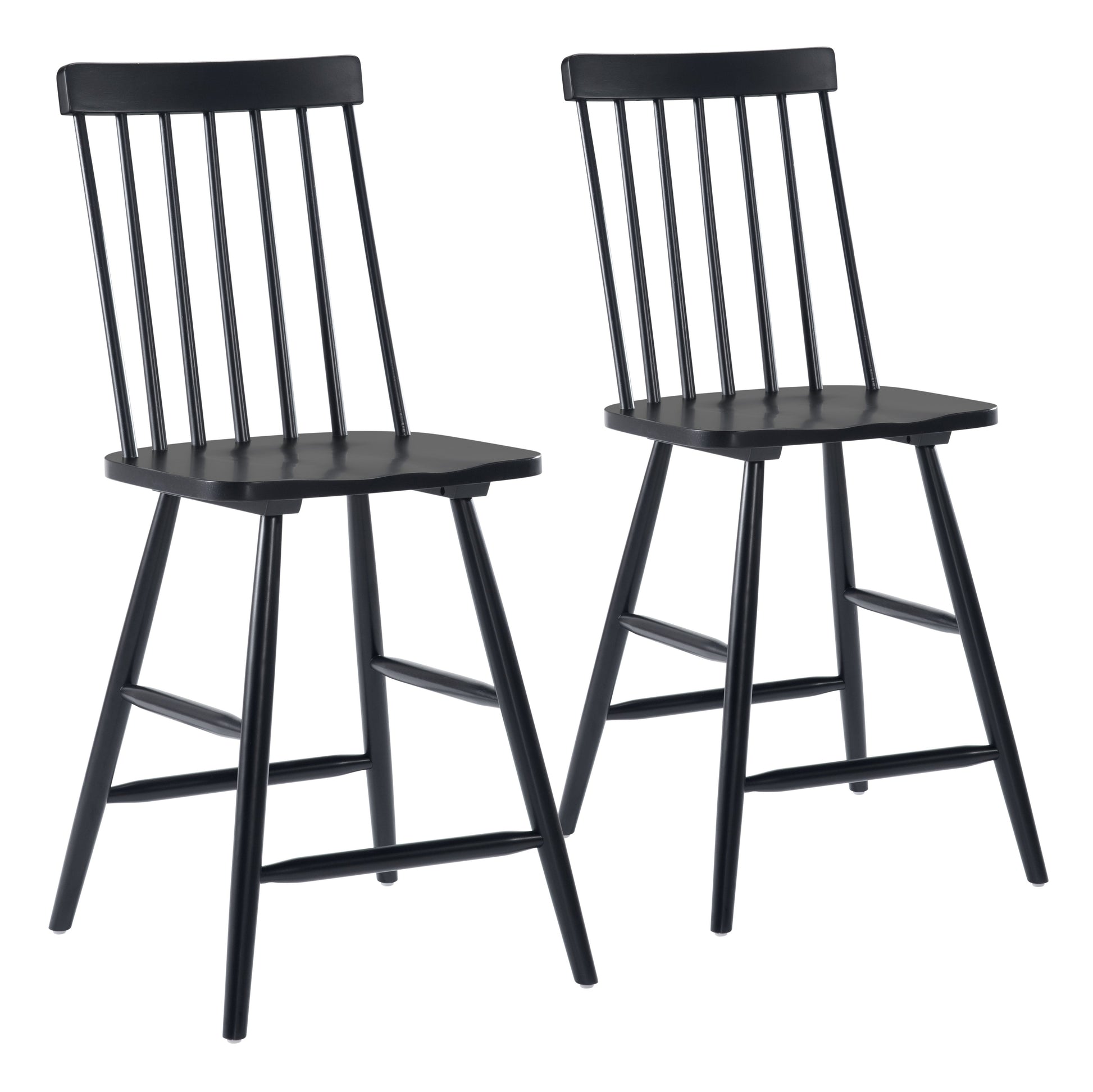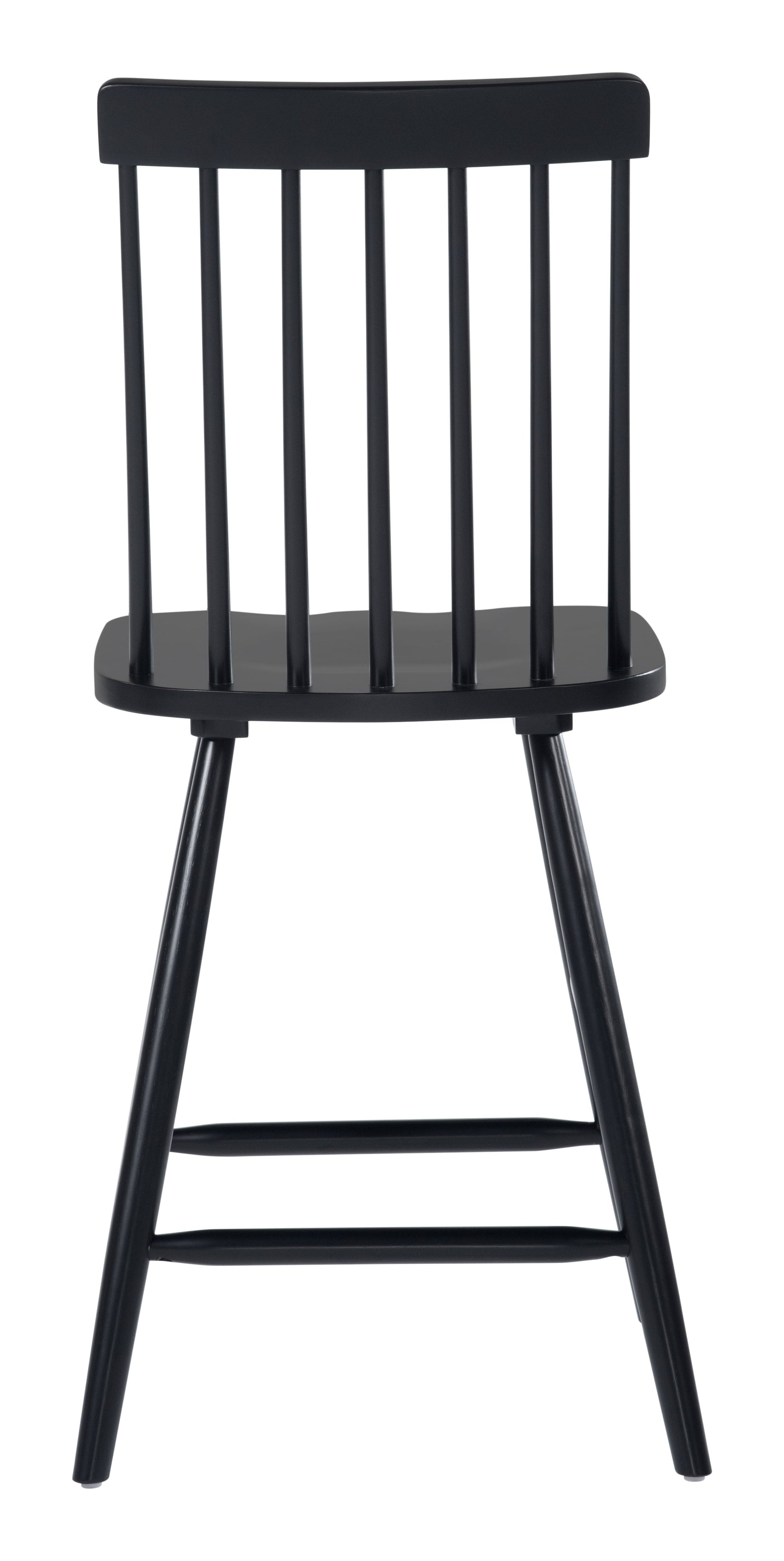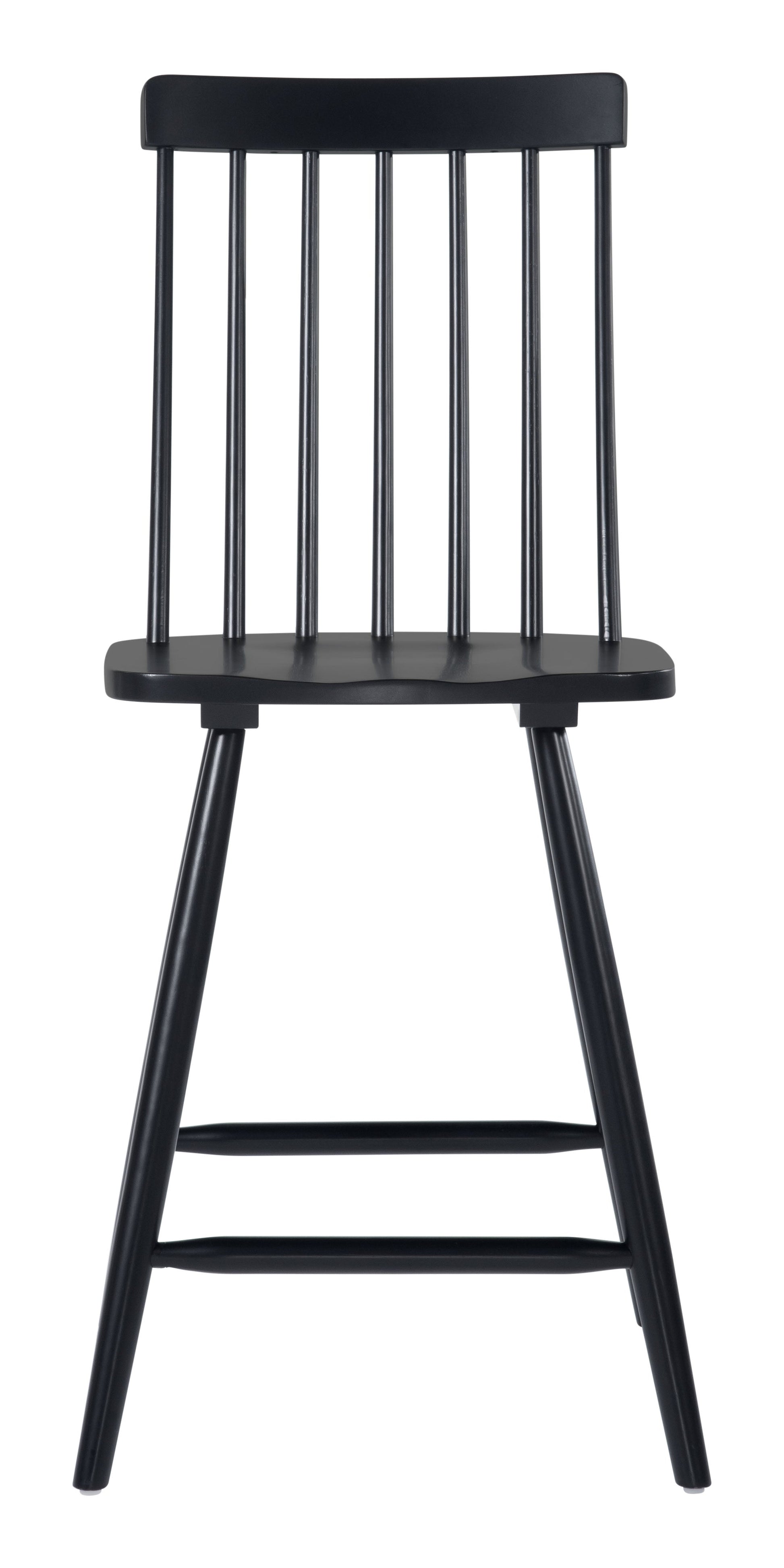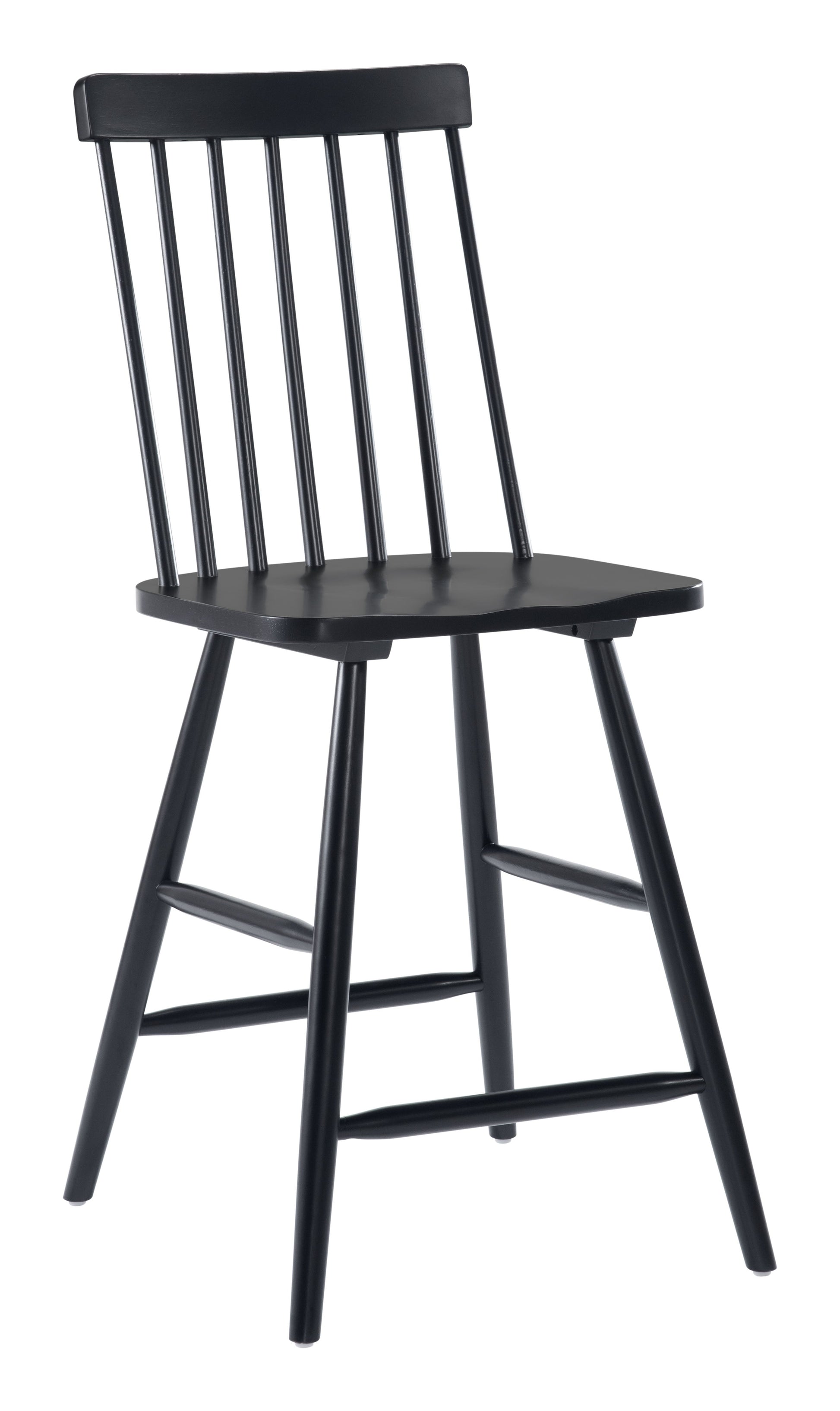 The Ashley counter stool is play on the classic Windsor chair, with its time-honored spindles, saddle seat and curved back. Made of rubberwood, the chair is stained deep black for contrast. Perfect for a spin on any mid century modern, urban, or industrial space.