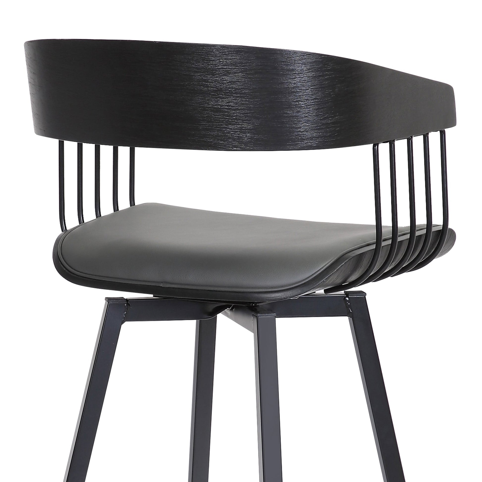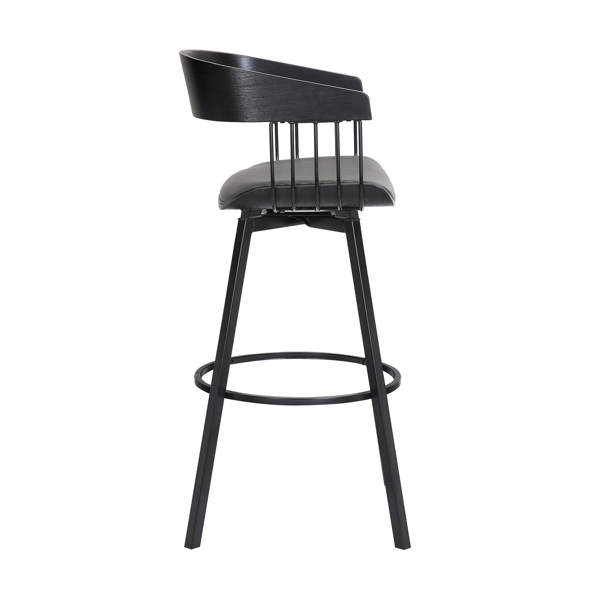 Athena Swivel Wood Counter and Bar Stool with Black Metal Base