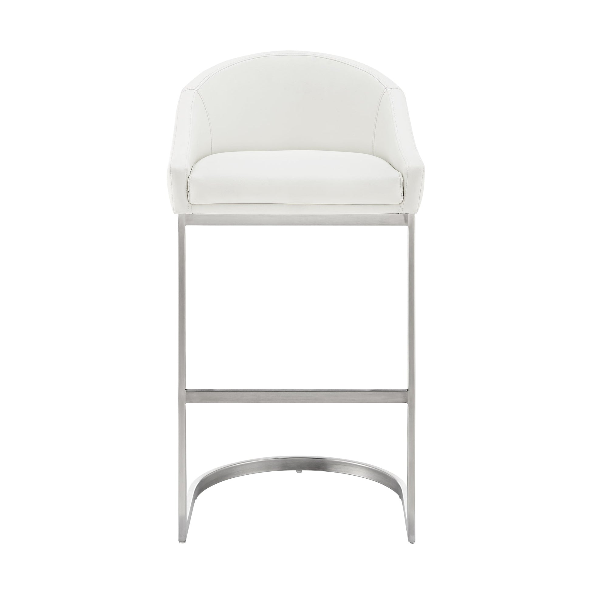 Elevate your home decor with this chic and stylish stool designed for both counter and bar heights. Crafted with a striking L-shaped cantilever base, this stool combines minimalism with outstanding support, ensuring a contemporary silhouette that complements any space. Upholstered in durable faux leather, it resists cracking, staining, fading, and UV damage, making it perfect for daily use.