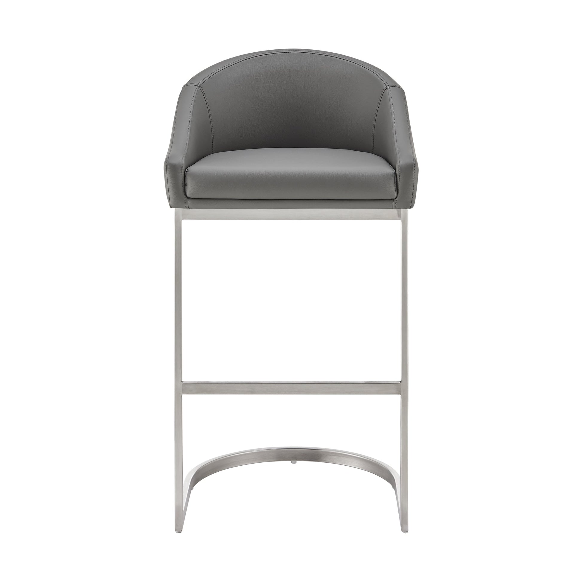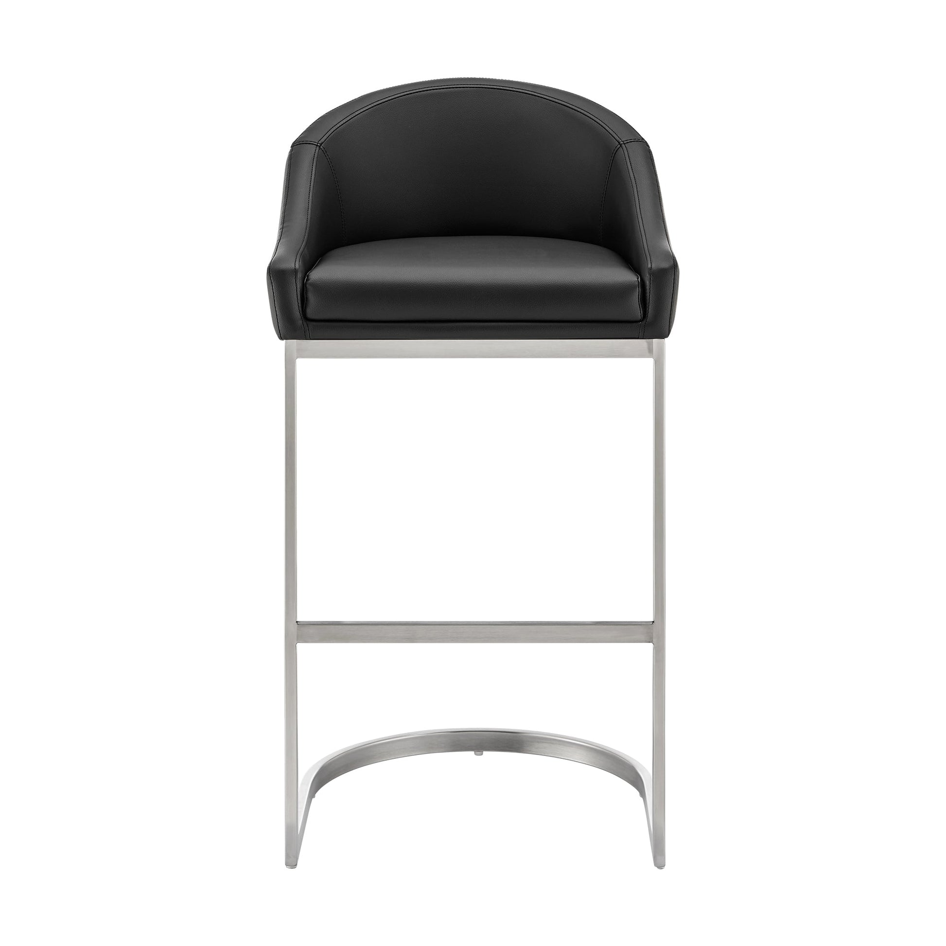Whether you're looking to enhance your kitchen island, pub table, home bar, or adjustable desk, this versatile stool fits seamlessly into various settings—from your kitchen to your home office. The sleek metal frame is available in a brushed stainless steel finish or a classic black, paired with a selection of faux leather upholstery options that add a touch of sophistication to your decor.
