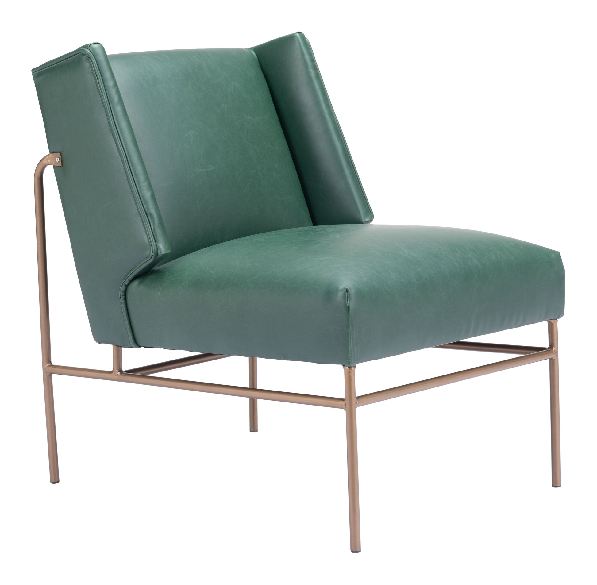This chair is wrapped in durable vinyl and sits on a powder coated steel base. This chair takes a modern shape and combines it with deco style. It fits in any space, hotel lobby, spacious loft, or glam bedroom.