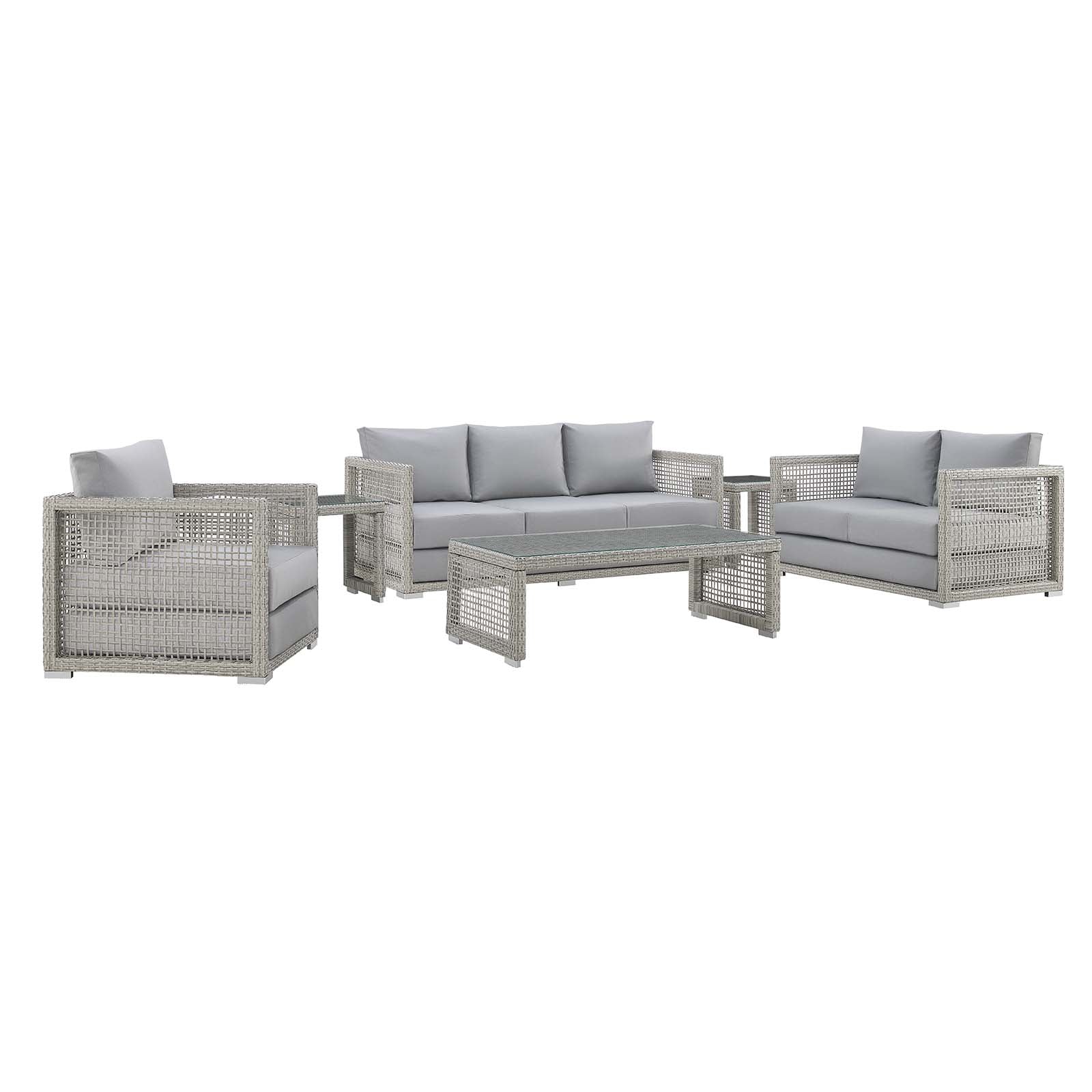 Aura 6 Piece Outdoor Patio Wicker Rattan Set Gray Gray EEI-3559-GRY-GRY-SET