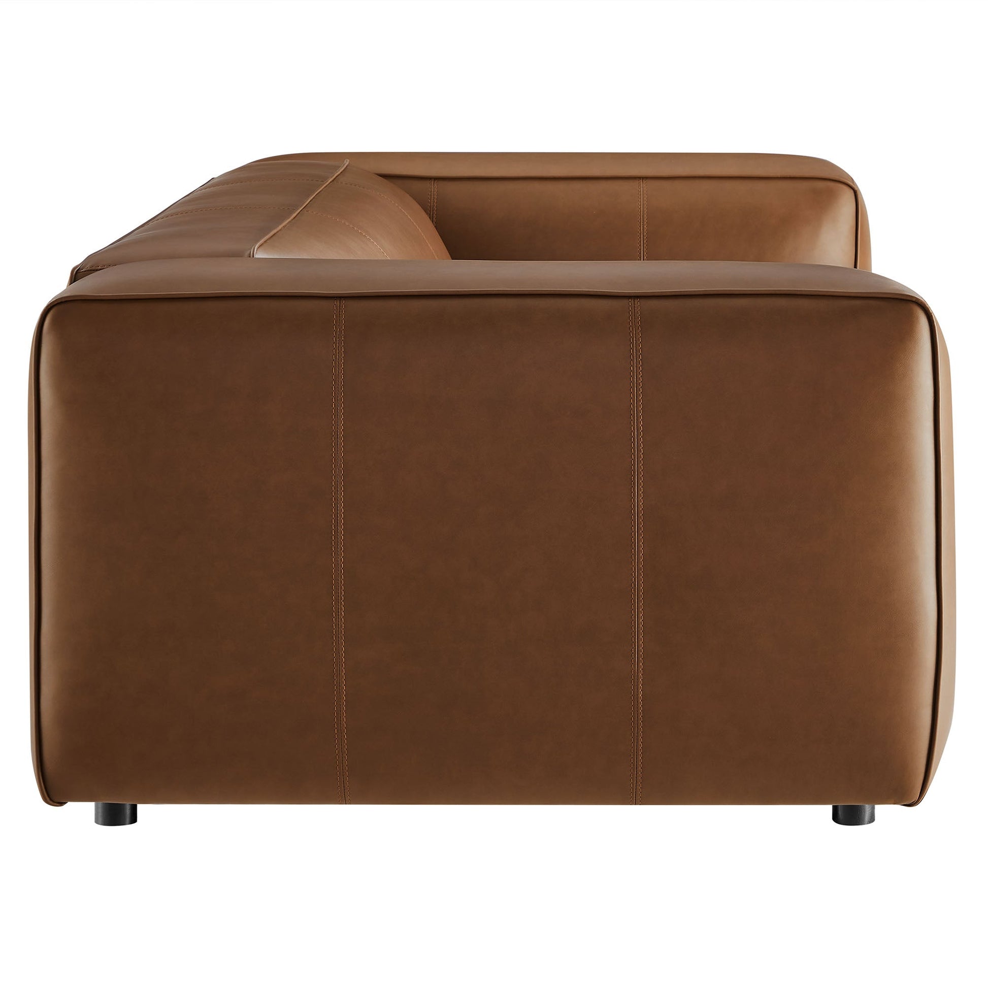 Make your living room feel instantly stylish with the low-key elegance of the Auren Vegan Leather Sofa. Wrapped in smooth, high-quality faux leather, this 3 seater sofa blends effortlessly into different interior styles, offering subtle charm. The deep seating invites relaxation, while the low backrest and wide, cushioned armrests create a cozy yet modern aesthetic. Finely stitched trim along the seams adds a tailored finish, while the entire overstuffed couch is generously padded with dense foam for a soft, supportive feel. Built on a sturdy wood frame, the Auren 88-inch sofa features sinuous springs for firm, flexible seating that holds its shape. This vegan leather sofa ships fully assembled with just the legs to attach, so you can relax and enjoy it right out of the box. Whether placed alongside your current furniture sofa or paired with other Auren sectional pieces, this faux leather couch offers versatile styling options to complete your space. Weight Capacity: 800 lbs Overall Product Dimensions: 43.70"L x 87.99"W x 26.38"H