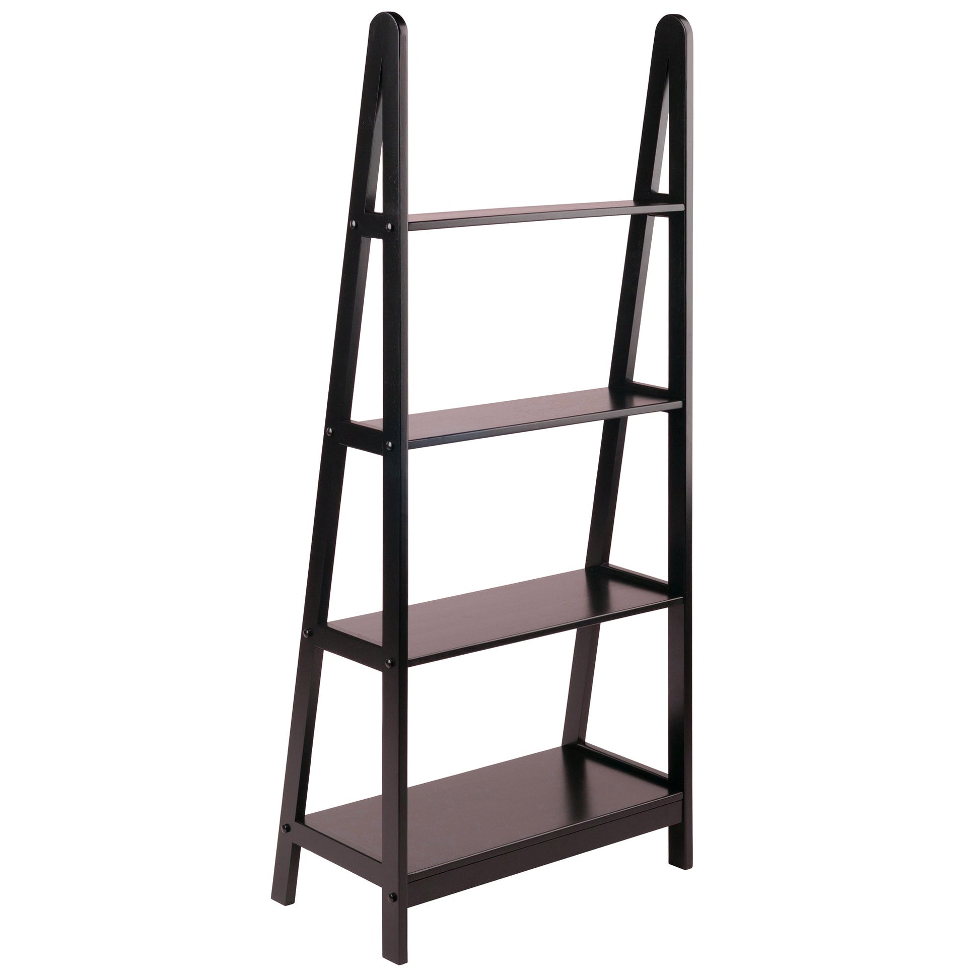 Display books, curios, plants, family photos, linens and other knick-knacks with this unique Winsome Wood Avalon 4-Tier A-Frame Shelf. This four-shelf bookcase sports a trendy design and slim structure that allow it to blend with many decors and fit into tight spaces. The back side will sit flush against a wall while the front of the ladder-style bookcase slants outward towards the bottom. The shelves decrease in size towards the top making it resemble a ladder and exude an aesthetic visual appeal. Ideal for an office, a reception area, a study, a classroom, a living room, a bedroom, a dorm room, a den or a kitchen. With 12.72” clearance between each shelf, this open shelf is perfect for displaying family portraits and trophies. Constructed of a combination of sturdy solid and composite wood, in a rich espresso finish. Conveniently packed and shipped in 1 box, that includes the hardware necessary for assembling. Replacement part request can be submitted directly to the manufacturer within 60 days from date of purchase.Dimensions : 24.96 in. Wide 12.91 in. Deep 58.43 in. High