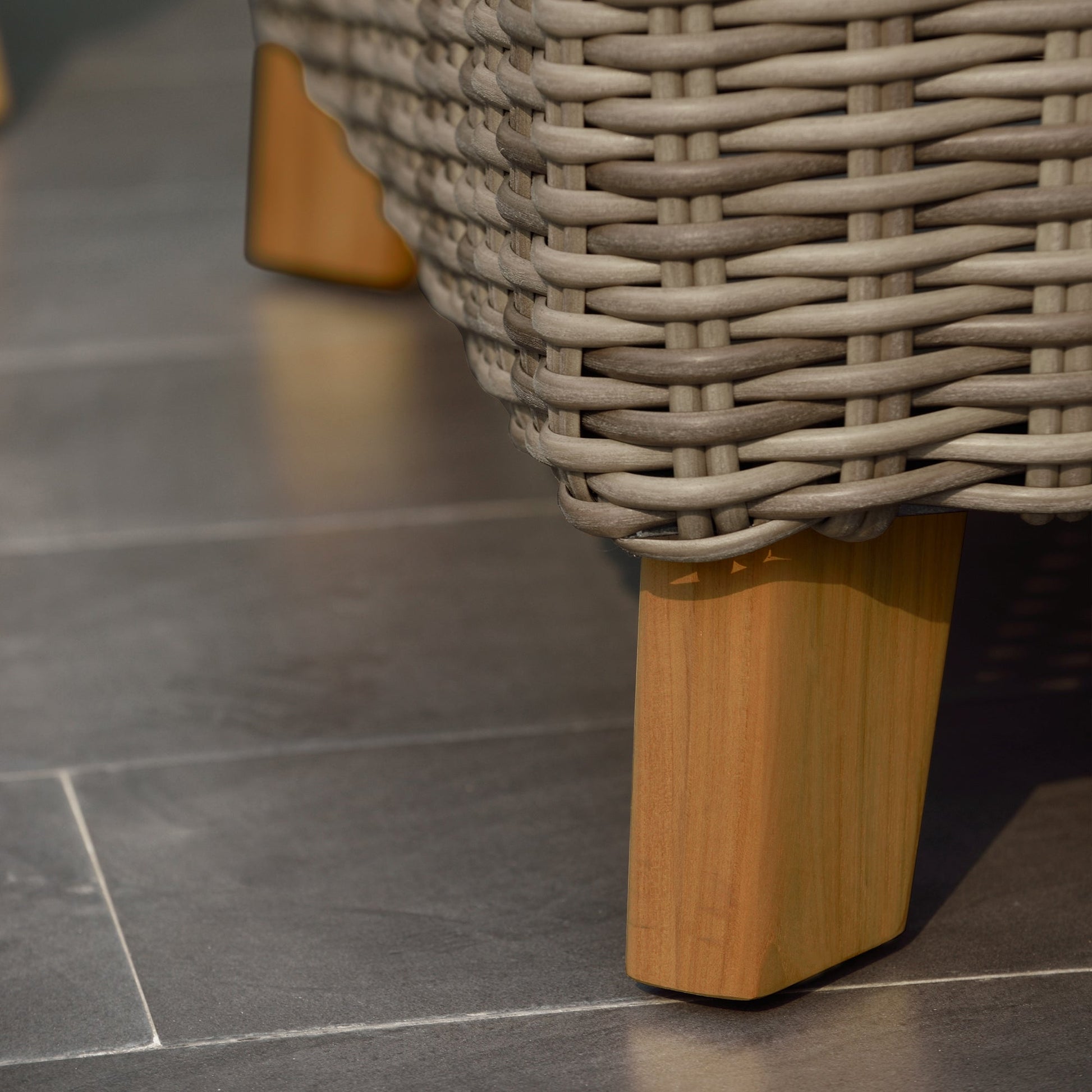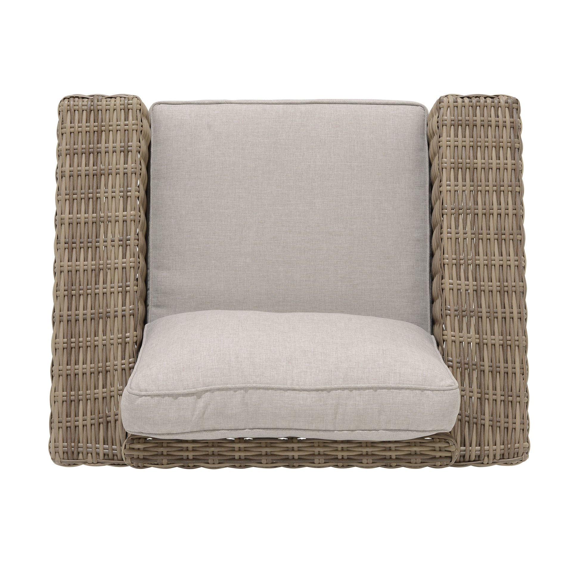 Bahamas Outdoor Wicker & Teak Wood Lounge Chair with Beige Olefin
