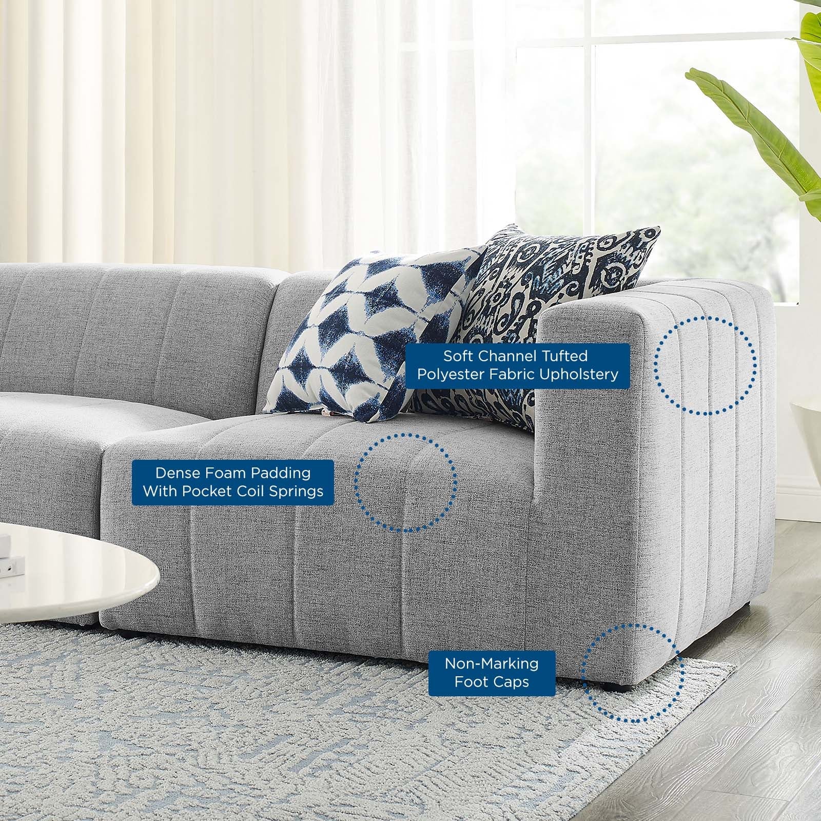 Indulge in comfort and relaxation by creating a custom living room and lounge area with the Bartlett Upholstered Fabric Sofa. Featuring subtle channel tufting, rounded corners, and soft polyester fabric upholstery, this three-seater sofa brings retro modern style and contemporary allure to your living space. Dense foam padding and a pocket coil spring system in the cushions offer a luxe seating experience with premium support and comfort. With a sturdy frame crafted from solid wood and plywood, this living room sofa features modular connectors to keep each sectional sofa piece secure and non-marking foot caps to protect flooring. Each Piece Weight Capacity: 331 lbs.