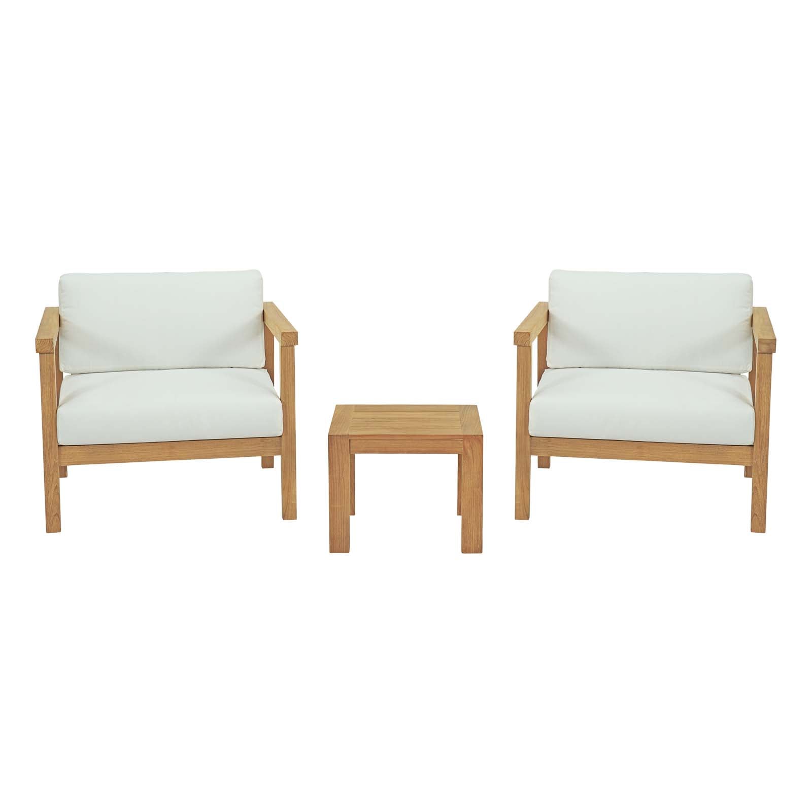 Bayport 3 Piece Outdoor Patio Teak Set Natural White EEI-3112-NAT-WHI-SET