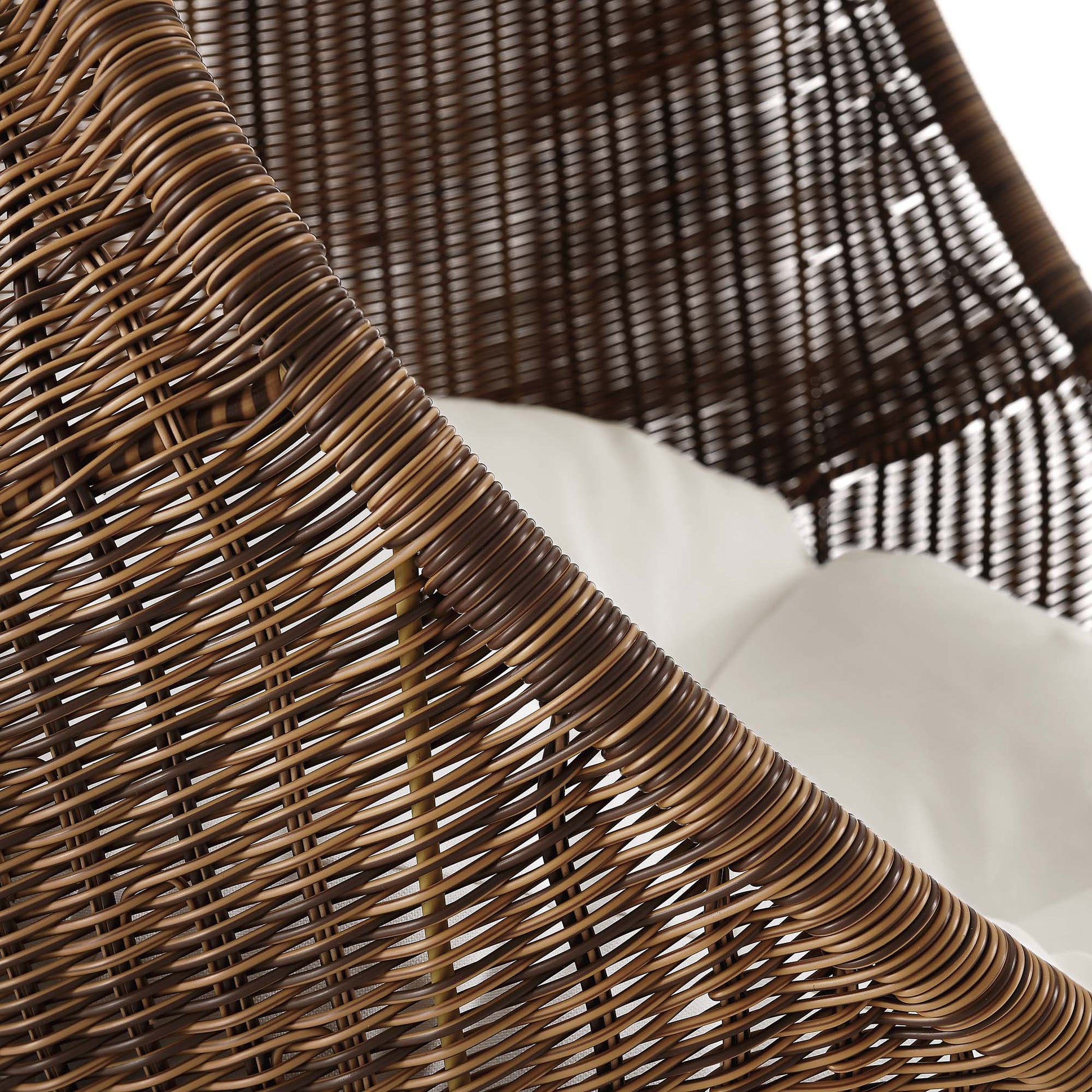 Blending comfort and style, the Bean Swing Chair creates an inviting retreat in your outdoor living space. Crafted from high-quality synthetic rattan and complete with a plush all-weather seat cushion, this patio swing offers a cozy spot for relaxation and leisure. Featuring a durable powder-coated steel frame, the Bean Patio Swing Chair With Stand is versatile enough to enhance your patio, backyard, porch, or poolside decor. Its sturdy construction is both weather and UV resistant, making it ideal for both outdoor and indoor settings. Whether you're diving into a good book, enjoying a drink, or simply taking in the tranquility of your surroundings, the Bean Hanging Swing Egg Chair adds a touch of whimsy and comfort to any area. Weight Capacity: 264.5 lbs. Overall Product Dimensions: 40"L x 47"W x 76"H