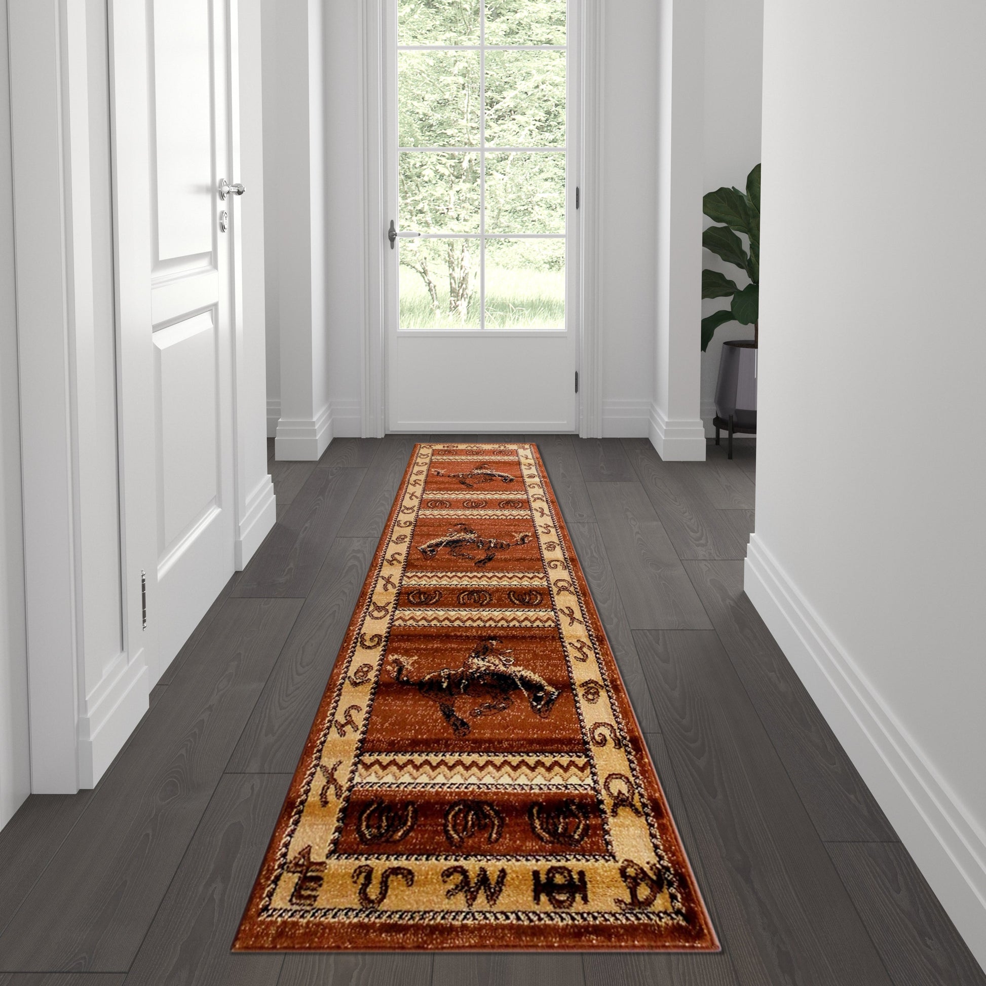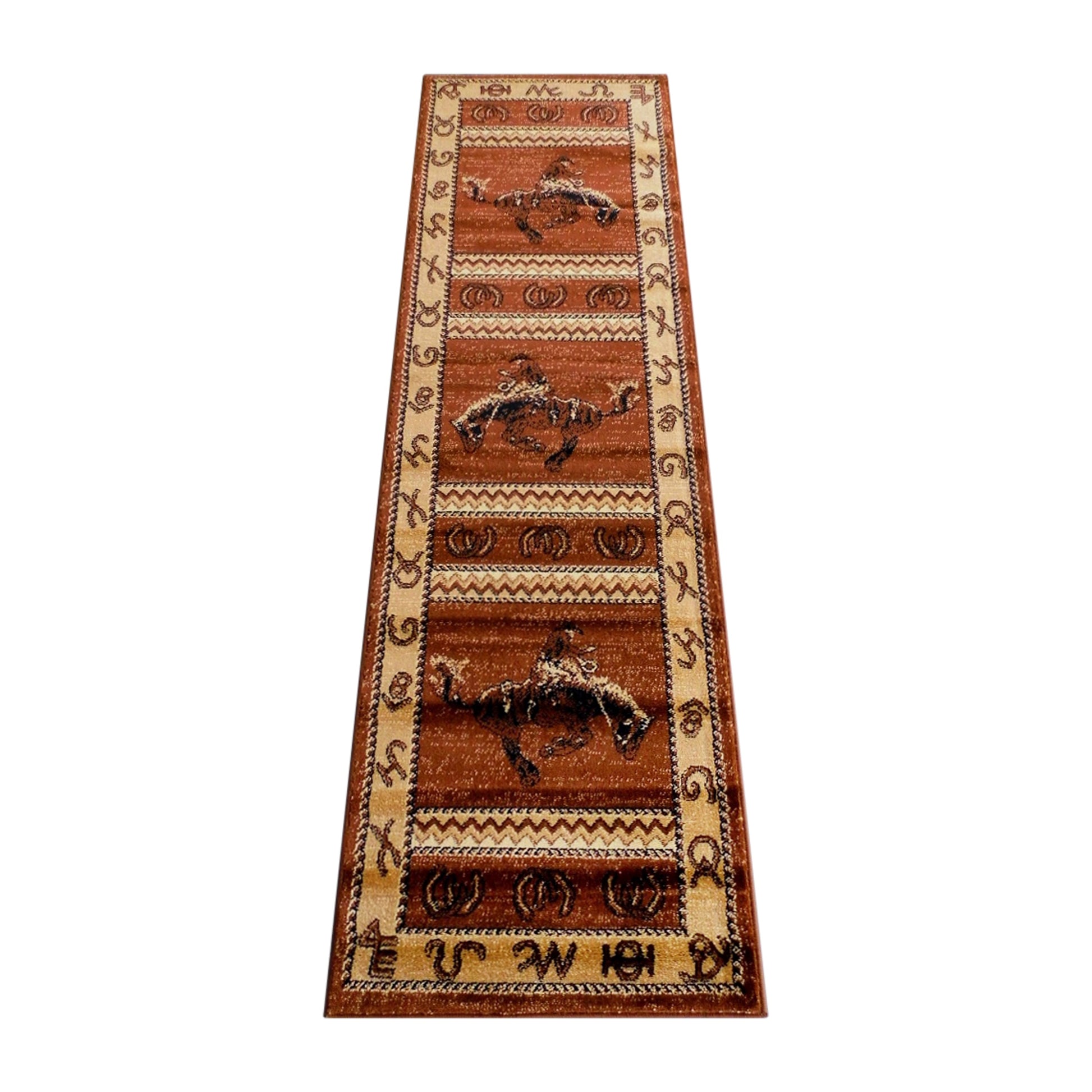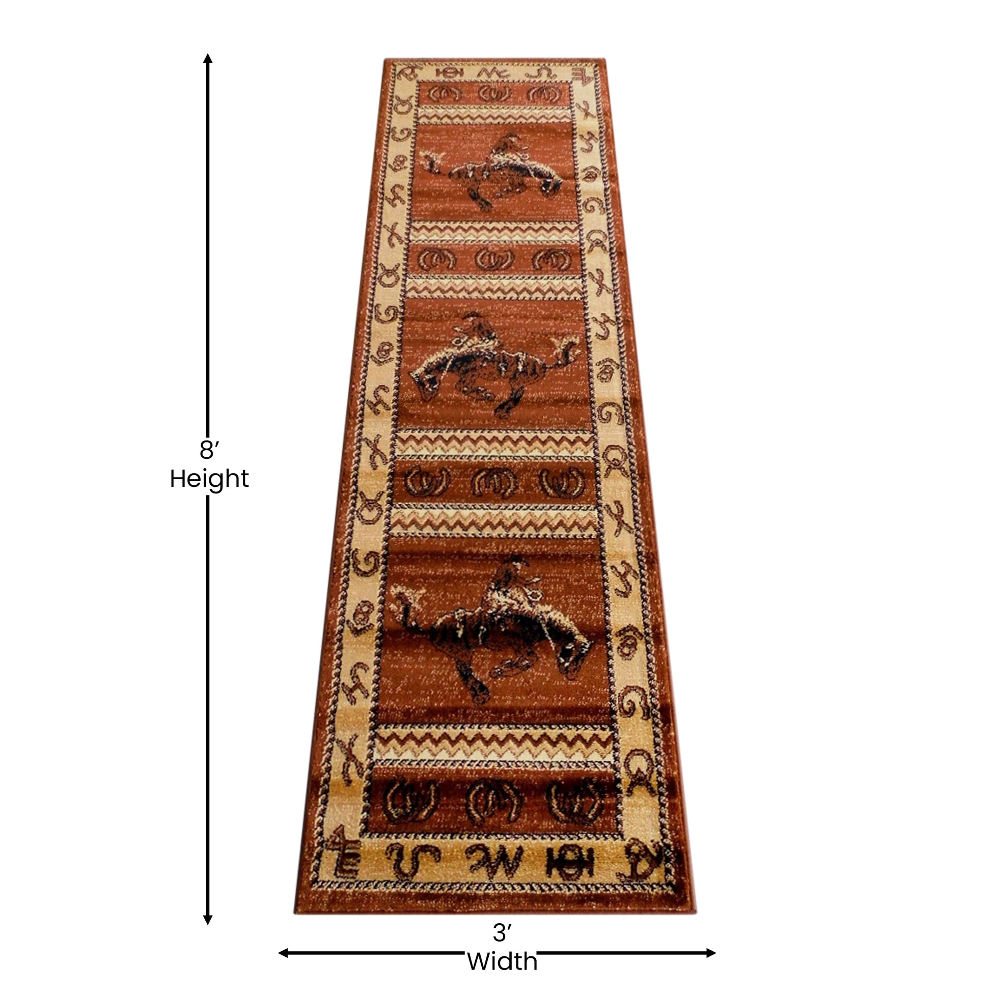 Hoytt Collection Brown 2' x 7' Bucking Bronco Cowboy Area Rug with Jute Backing for Indoor Use Dimensions: 26.4"W x 86.4"D x 0.5"H